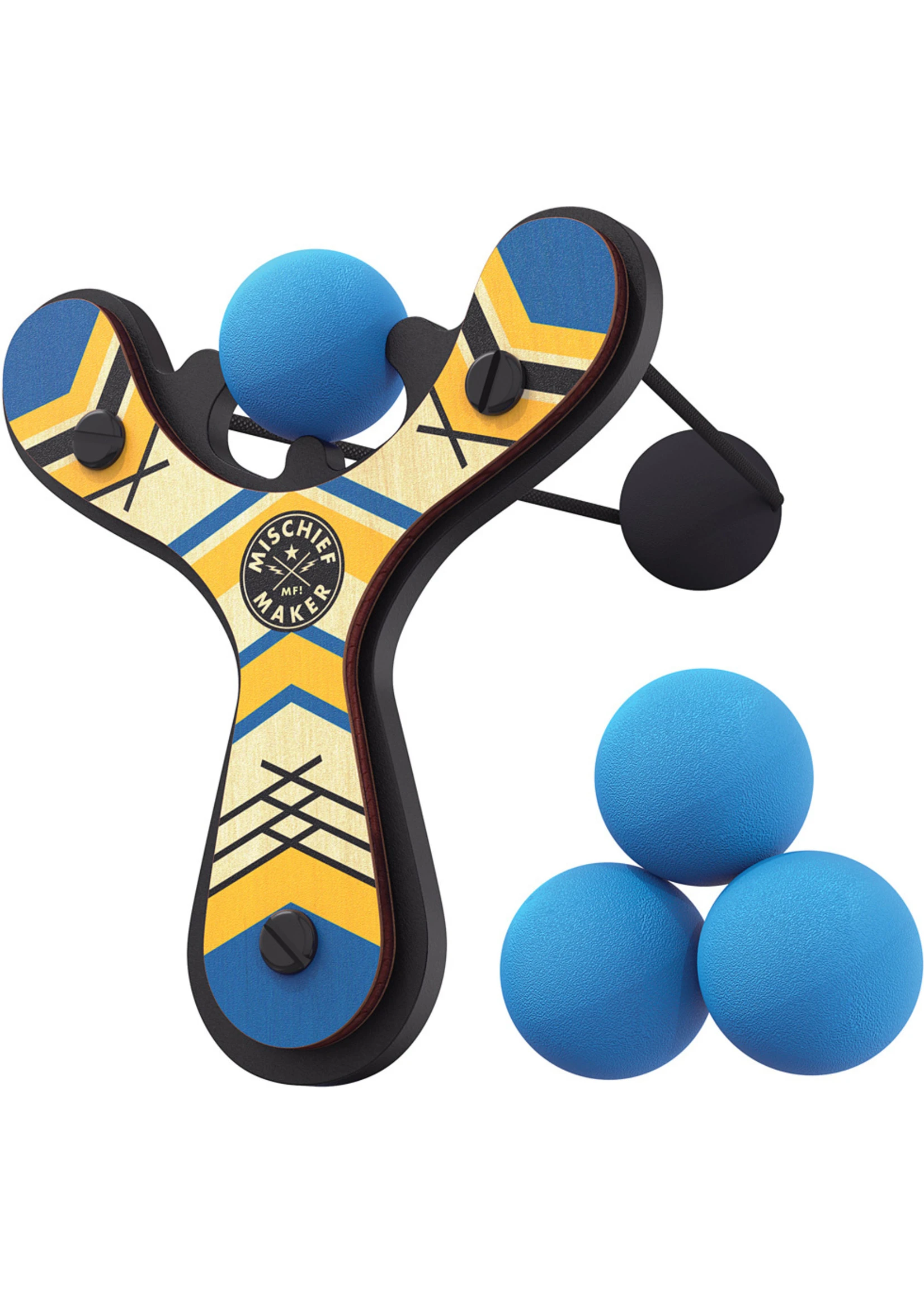 The Slingshot: a truly classic toy. The kind of toy that lets a kid play like a kid. Like the classic, our Mischief Maker Slingshot is handmade from real wood for an authentic feel and is designed to only shoot soft foam balls. The soft foam ball is held in place until shot out of the slingshot. Super easy to use.Â