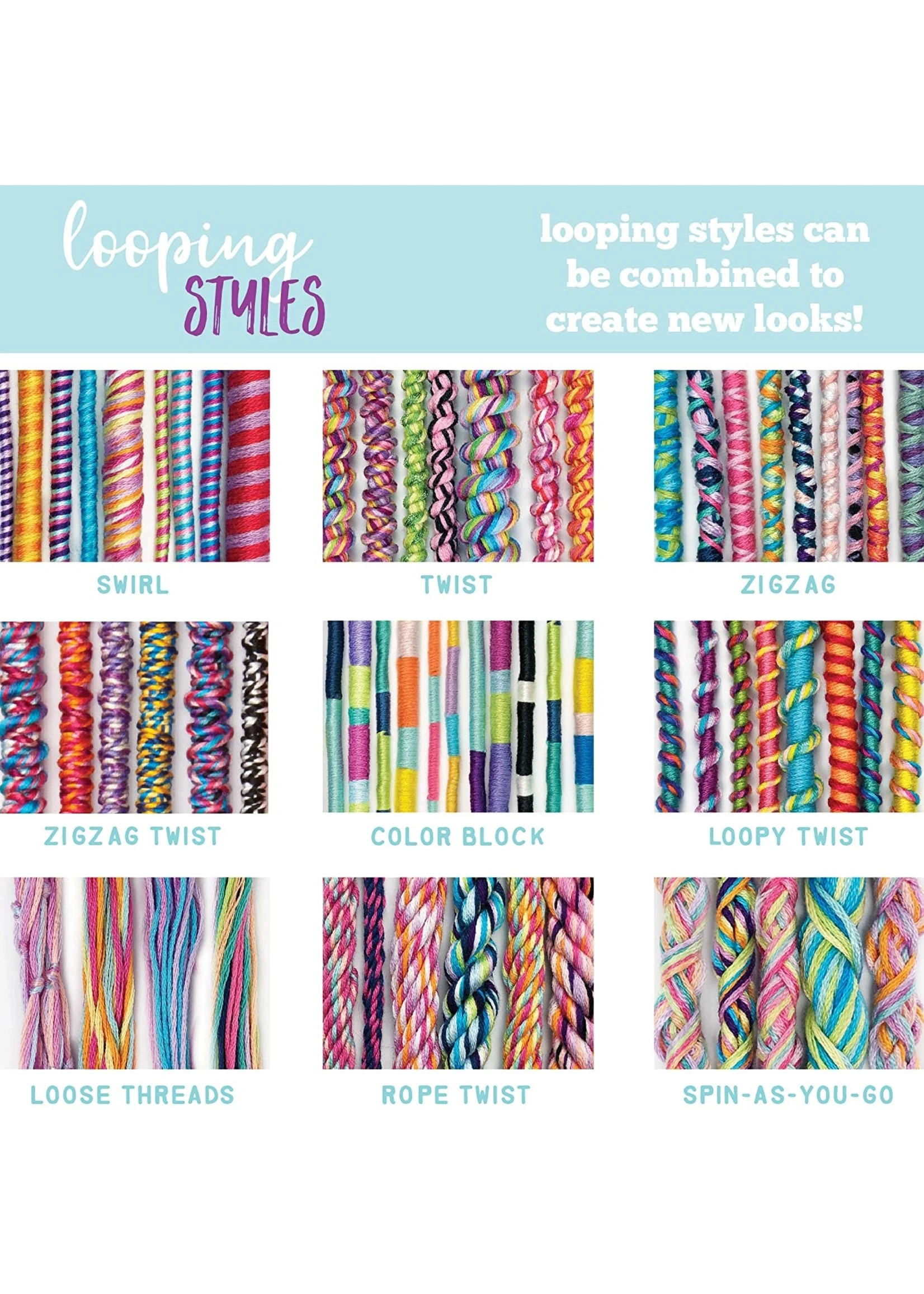 The great thing about Loopdies (besides taking only minutes to make) is that there’s never a pattern to follow so each accessory is completely different and unique, just like you and your friends. You can use one thread or as many threads and color combinations as you like. You can make them thick, thin or anywhere in between. You can use different looping styles and even combine them into one accessory.