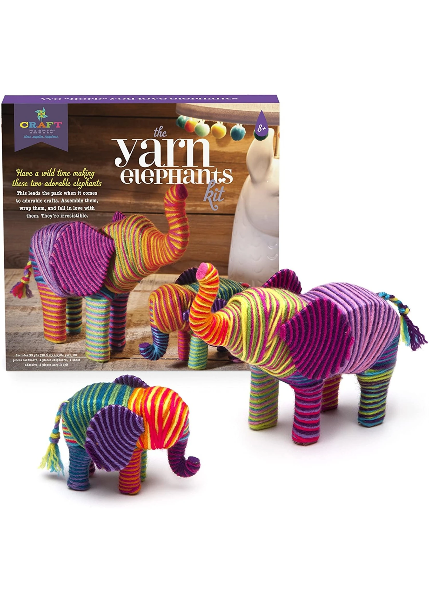 Craft-tastic yarn elephants kit really leads the pack when it comes to adorable crafts. Kit includes supplies and instructions to make 2 adorable yarn wrapped elephants. Stack cardboard pieces and wrap them with yarn. Make them, display them, and fall in love with them! ages 8+ why Craft-tastic? Craft-tastic represents all that’s cool and trendy in the amazing world of crafts. As the trendsetting brand we’re known for our extensive line of products from jewelry, to accessories, to home decor, to make and play, to making together. You name it, there’s something for every age and interest. Like poems? Dig string art? Love learning new techniques? Great, because Craft-tastic has tons to choose from. But it’s not just Quantity, it’s quality, too. And only the highest quality materials and components are used in Craft-tastic craft kits. They’re specialty products, without specialty pricing. That’s what makes Craft-tastic fantastic. Ann Williams Group is a small, Michigan based, women-owned Company that makes the Craft-tastic and craft crush brands. Our CEO is both a Maker and a mom, who is deeply passionate in her belief that hands-on making is a critical part of child development. By tapping into their curiosity for creativity, she firmly believes crafts help kids learn to liberate their inner creator, unleash their imagination and gently challenge the conventional by crafting. -The Ann Williams team: ).Â