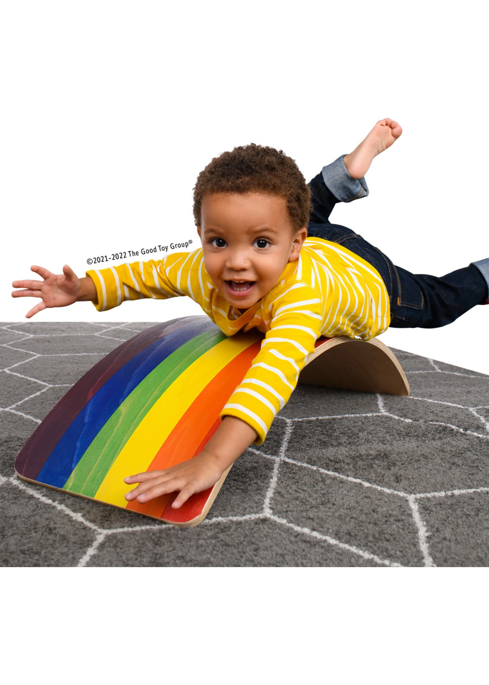 It’s a slide, bench, rocker, balance board, car ramp, river boat, tunnel, and just the coolest slice of natural birch ever. Beautifully crafted, in cheerful rainbow hues, this lovely board will inspire creative play while developing strength and motor skills, making it a perfect gift. Open-ended free play lives on! Made in the USA!