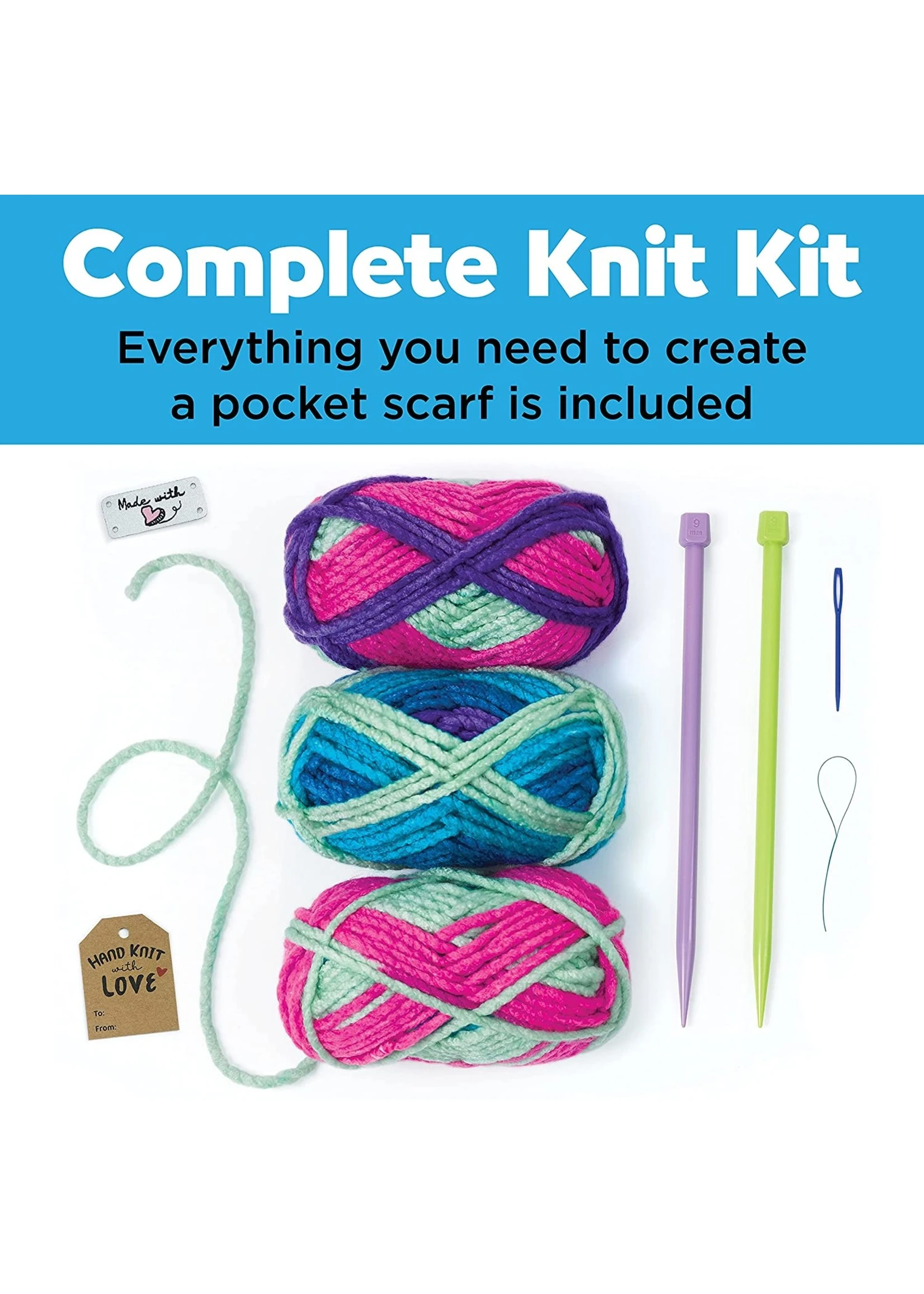 Learn to knit while creating a vibrant pocket scarf with this knitting kit for kids! Step-by-step illustrated instructions and video, bulky yarn, and colored-coded knitting needles make learning this new skill fun and simple
