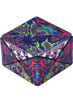 Shashibo is a shape-shifting box that incorporates strong magnets, allowing it to be combined with other Shashibo cubes for making larger sculptures and structures. Folding, captivating, complex, this beautiful magnetic art morphs into 70 different shapes. The Artist Series was designed by American Artist Laurence Gartel, considered a pioneer of digital art. Each Shashibo has 4 art designs – one outer and three inner designs. Chaos is a 2.4″ cube of red, purple and blue swirls. Download the Shashibo Shape Guide and see if you can master this shape-shifting puzzle.
