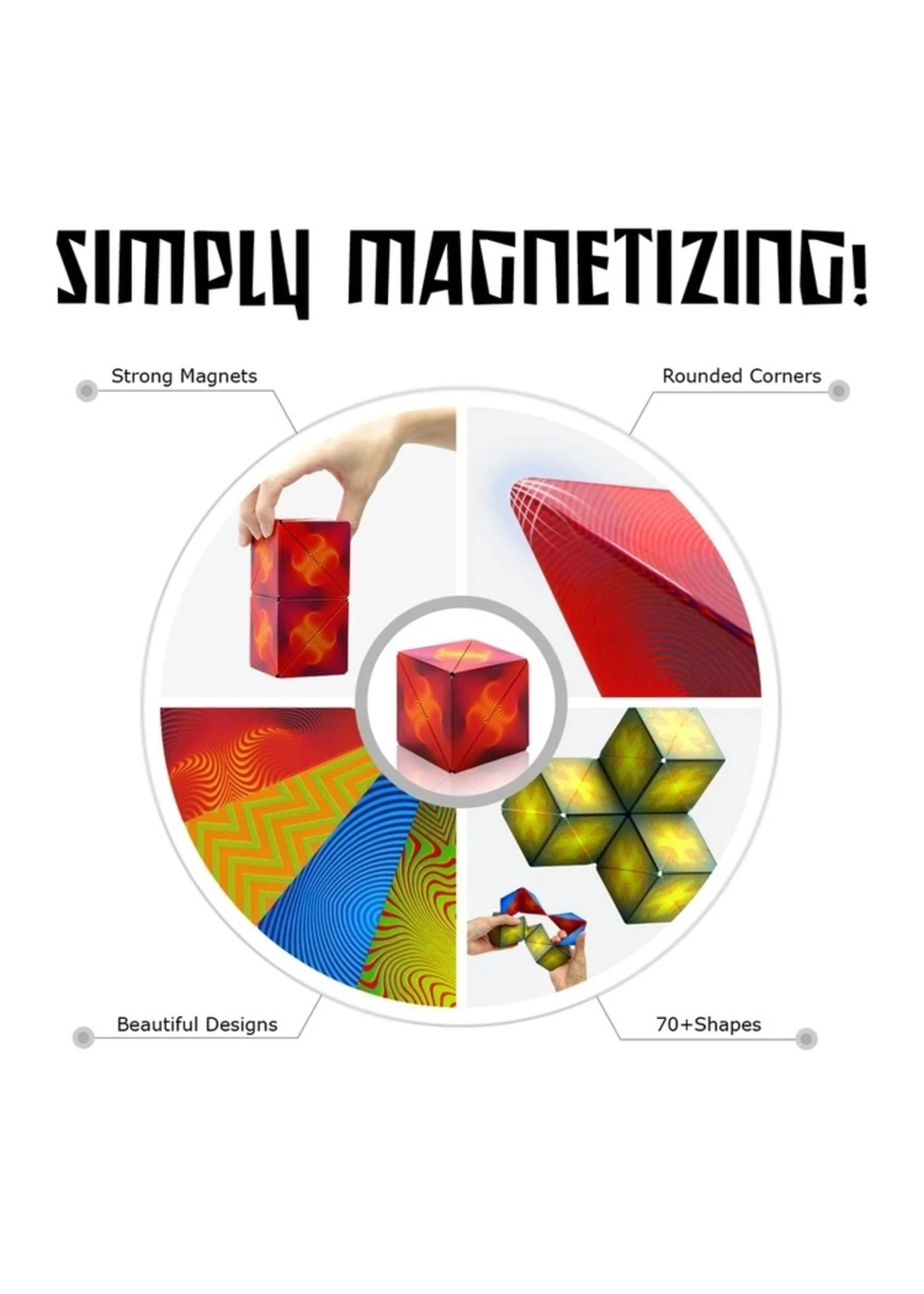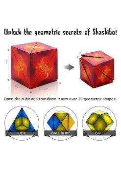 Unlock the mystery of Shashibo! Each Shashibo is powered by 36 rare earth magnets. 1 cube transforms into over 70 shapes. Combine 2 or more Shashibos to build larger shapes and create more possibilities. Can you master the shape shifting box?