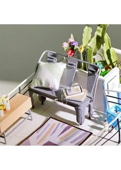 TINY FURNITURE & ACCESSORIES: This model dollhouse room comes equipped with all the necessary tools needed to recreate your own shelf, potted plants, flowers, furniture, and much much more to give you a detail-oriented and well-furnished feel to your loft space. You can even add flooring. With such amazing decor and details, this modern DIY house is sure to impress.