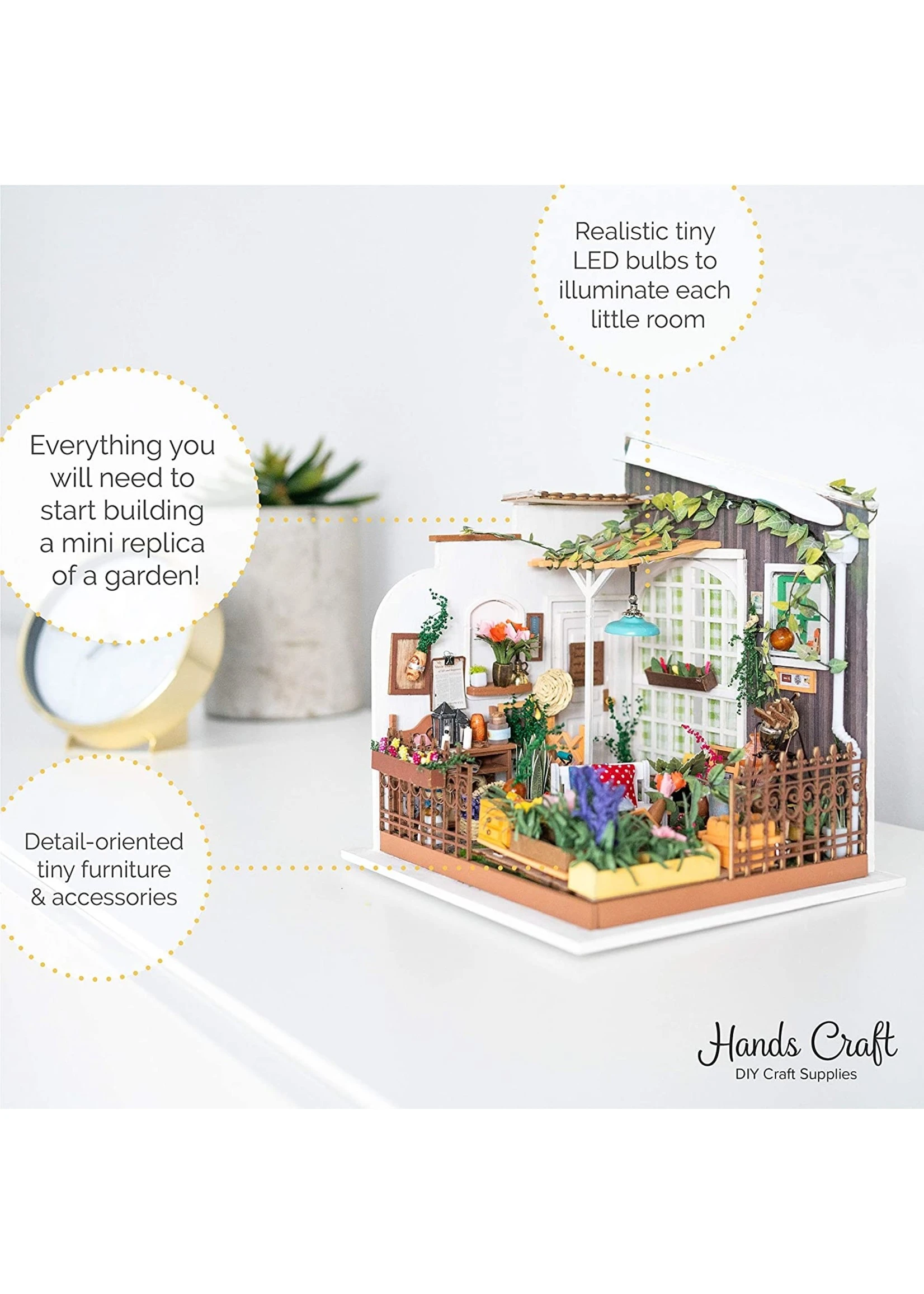 TINY FURNITURE & ACCESSORIES: This model dollhouse room comes equipped with all the materials and tools you need to recreate flowers, plants, pots, garden furniture, and much more to give you a detail-oriented and well-furnished feel to your tiny space. You can even add flooring. With such amazing decor and details, this modern DIY house is sure to impress.