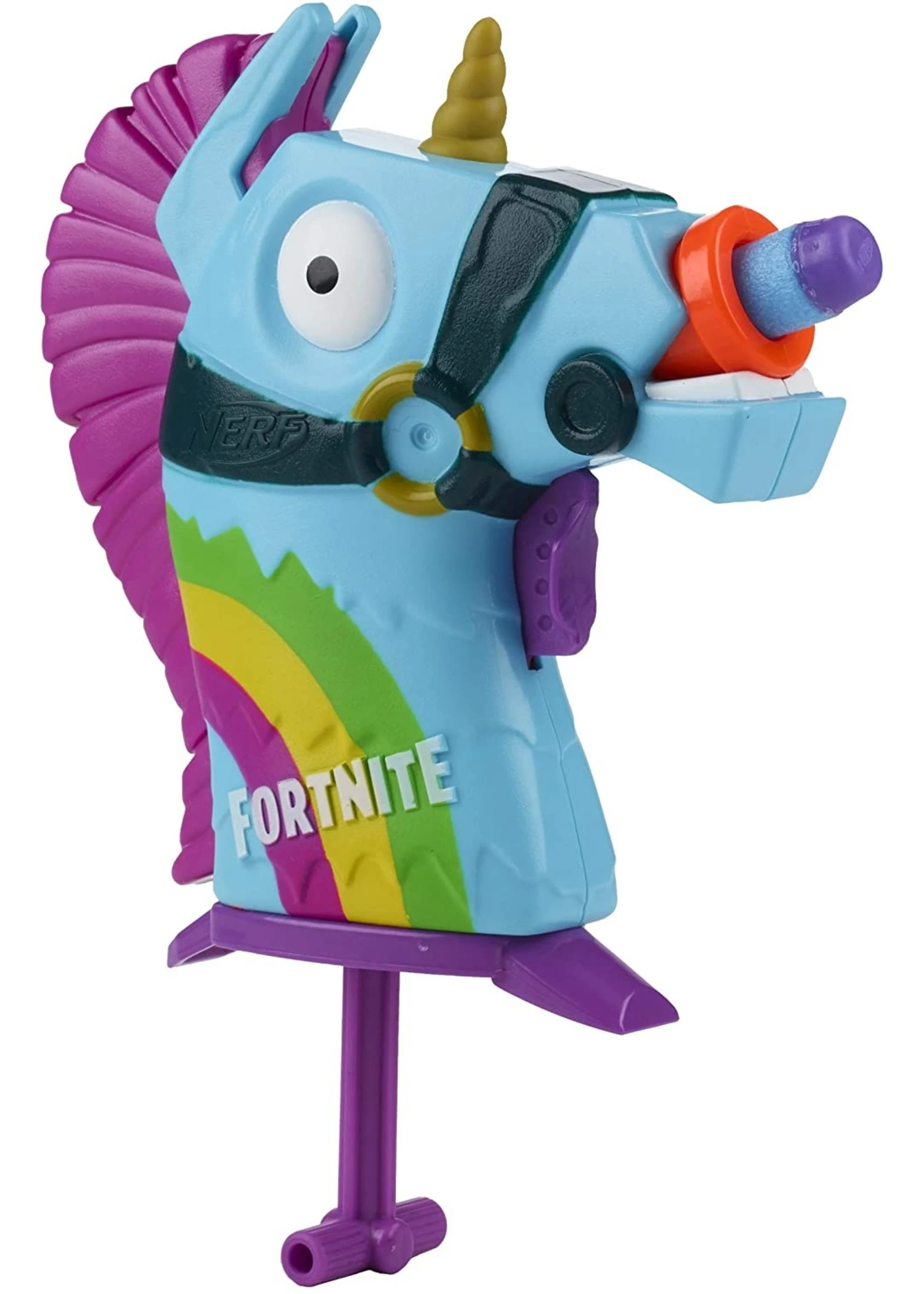 - FORTNITE DART-FIRING BLASTER: Nerf Fortnite Rainbow Smash mini blaster is inspired by the pickaxe used in the popular Fortnite video game and comes with 2 Official Nerf Elite darts