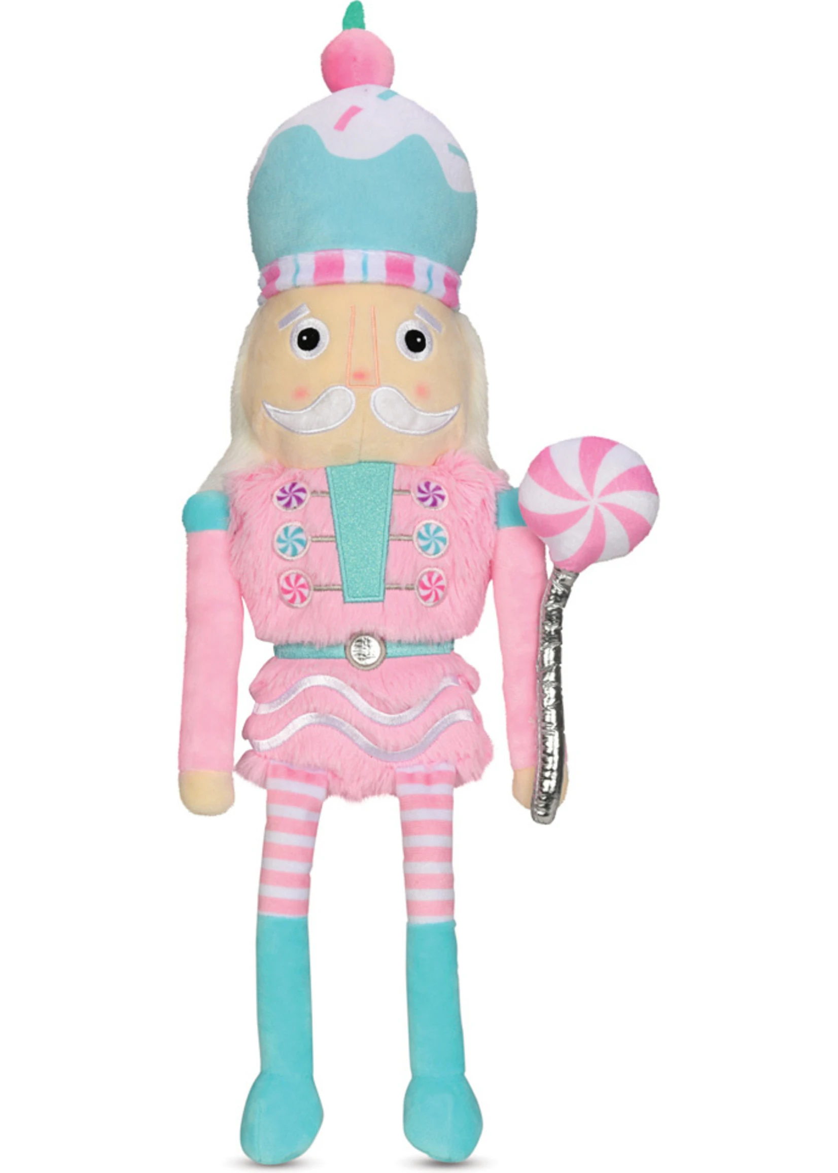 Bring home a touch of winter wonderland magic with this interactive plush friend. At 21″ tall, this posable sweetie will sit neatly on your shelf, but with soft teal and pink fur, we highly recommend this nutcracker for cuddling. Candy embroidered details and sparkly elements add to this one’s sugar plum charm!