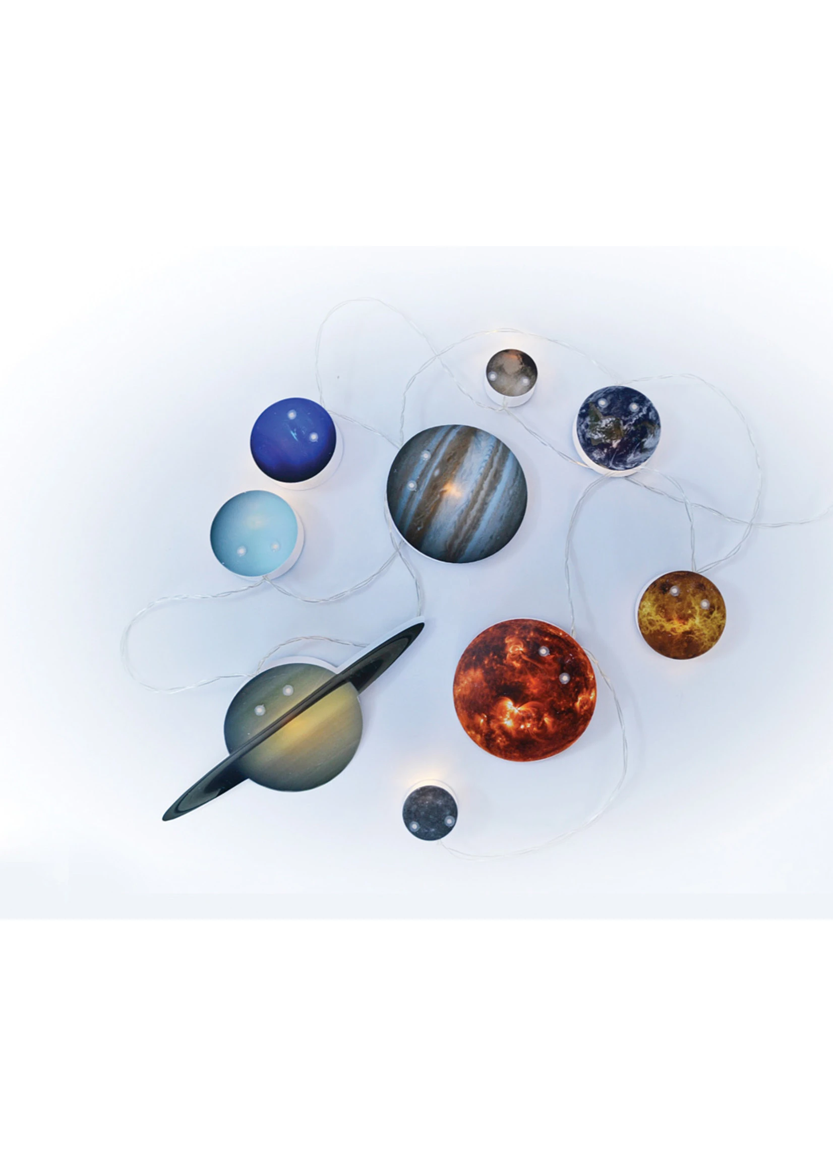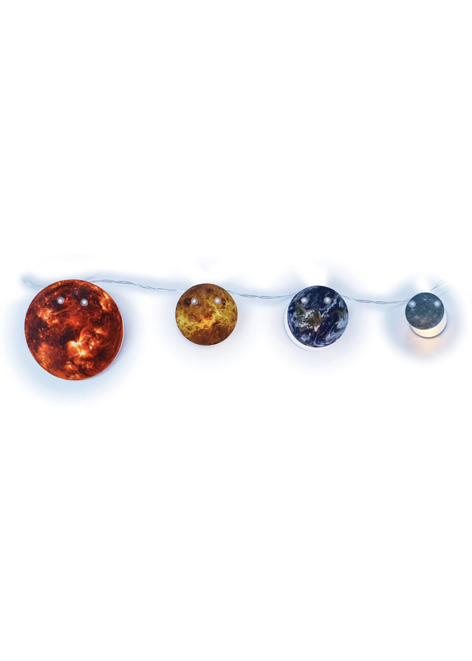 The glow of 10 LED lights on a 6½ ft. string is out of this world over a bed or above a desk. If you want to light the imagination of a dreamer, you couldn’t “planet” better. Requires 2 AA batteries.