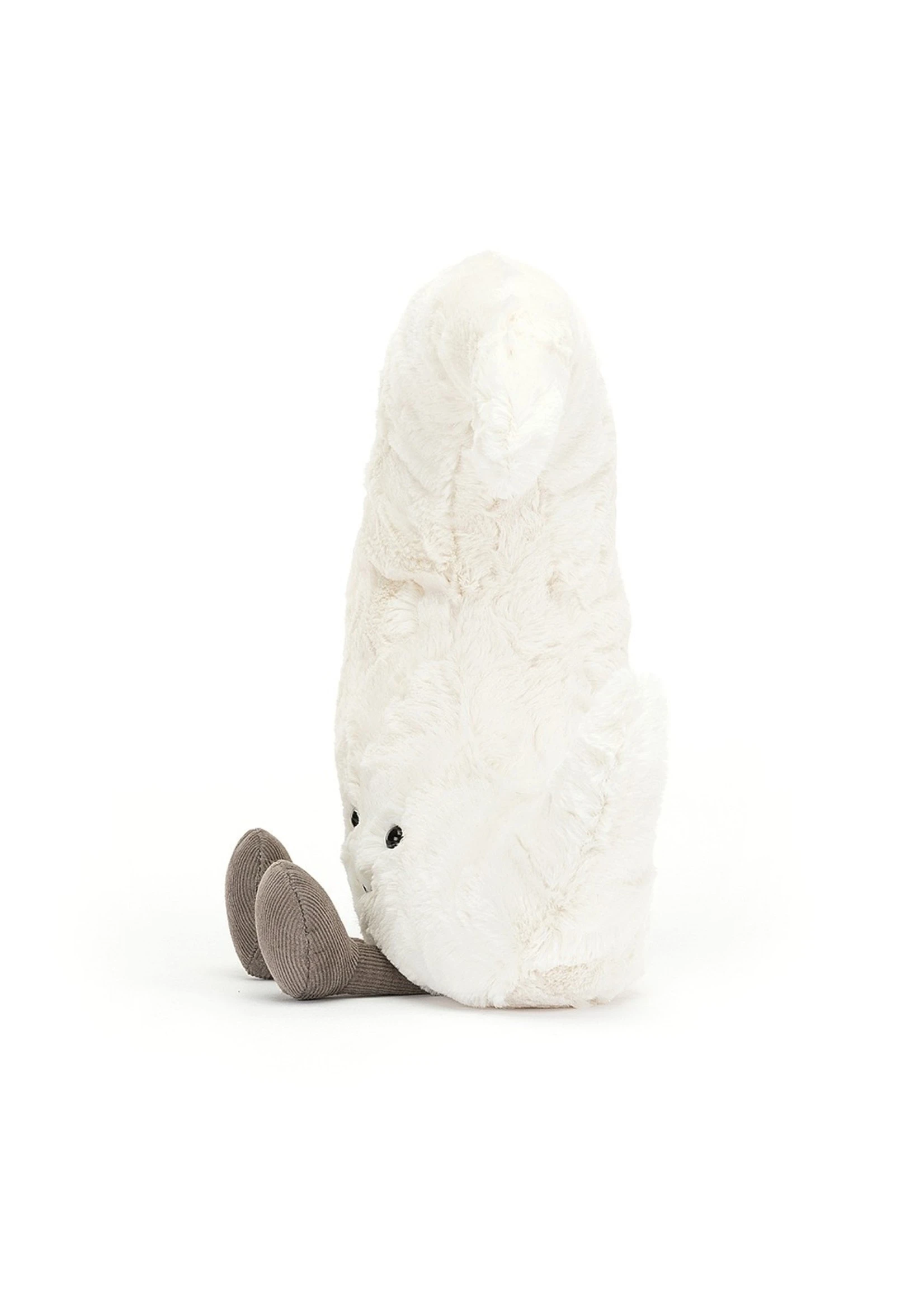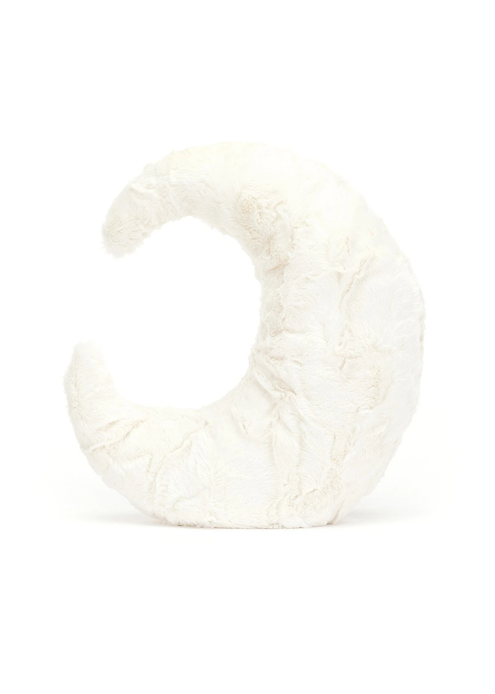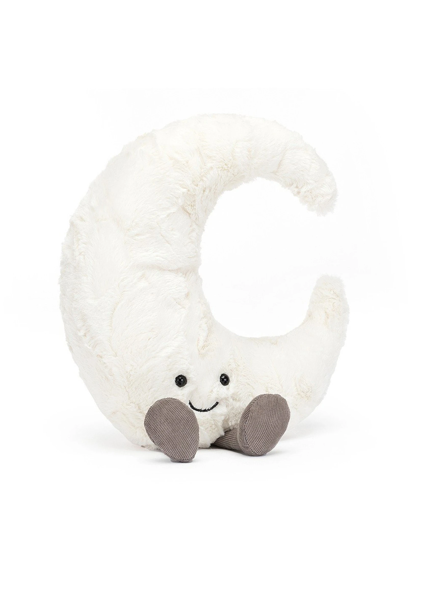 Gorgeously textured with velvety craters, Amuseable Moon is full of fun! A midnight matey for bedtime hugs, this pearly-white pal is curvy and cuddly. With squidgy cord booties, a weighted bottom and a peaceful smile, this moon’s waxing poetic! A magical crescent and a marvellous present.Â