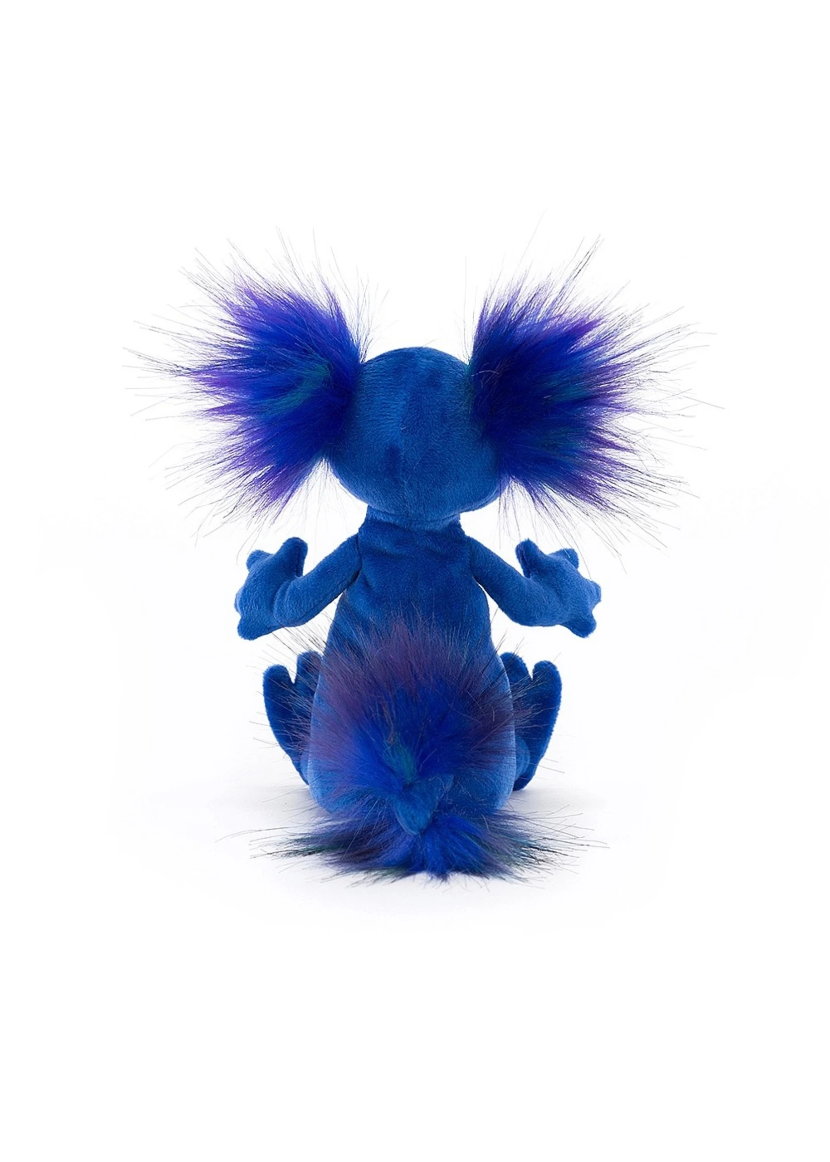 Andie Axolotl is a bold and bubbly scamp who loves to paddle in the river with those big bobbly feet! This funky blue friend comes from Mexico and rocks a rainbow of tufts in electric purple, green and indigo! From fuzzy head to squidgy tail, Andie’s a fiesta of fun!