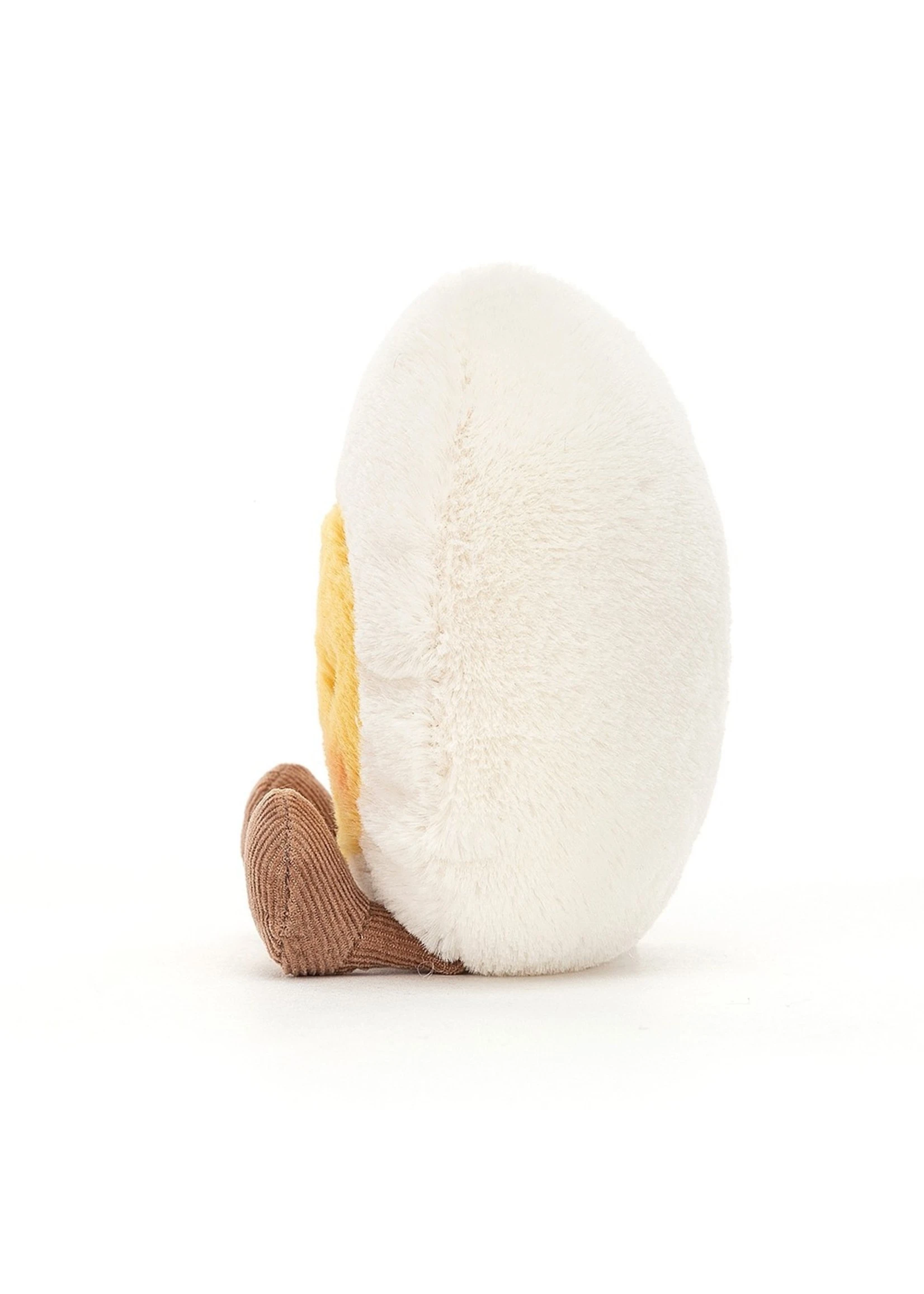 Boiled Egg Blushing is a softy with a secret! This bashful friend has a goofy stitch smile and peachy rosy cheeks. With marvellous creamy marshmallow fur, a sunshiney yolk and toasty cord booties, this giggly egg can’t help cracking up!