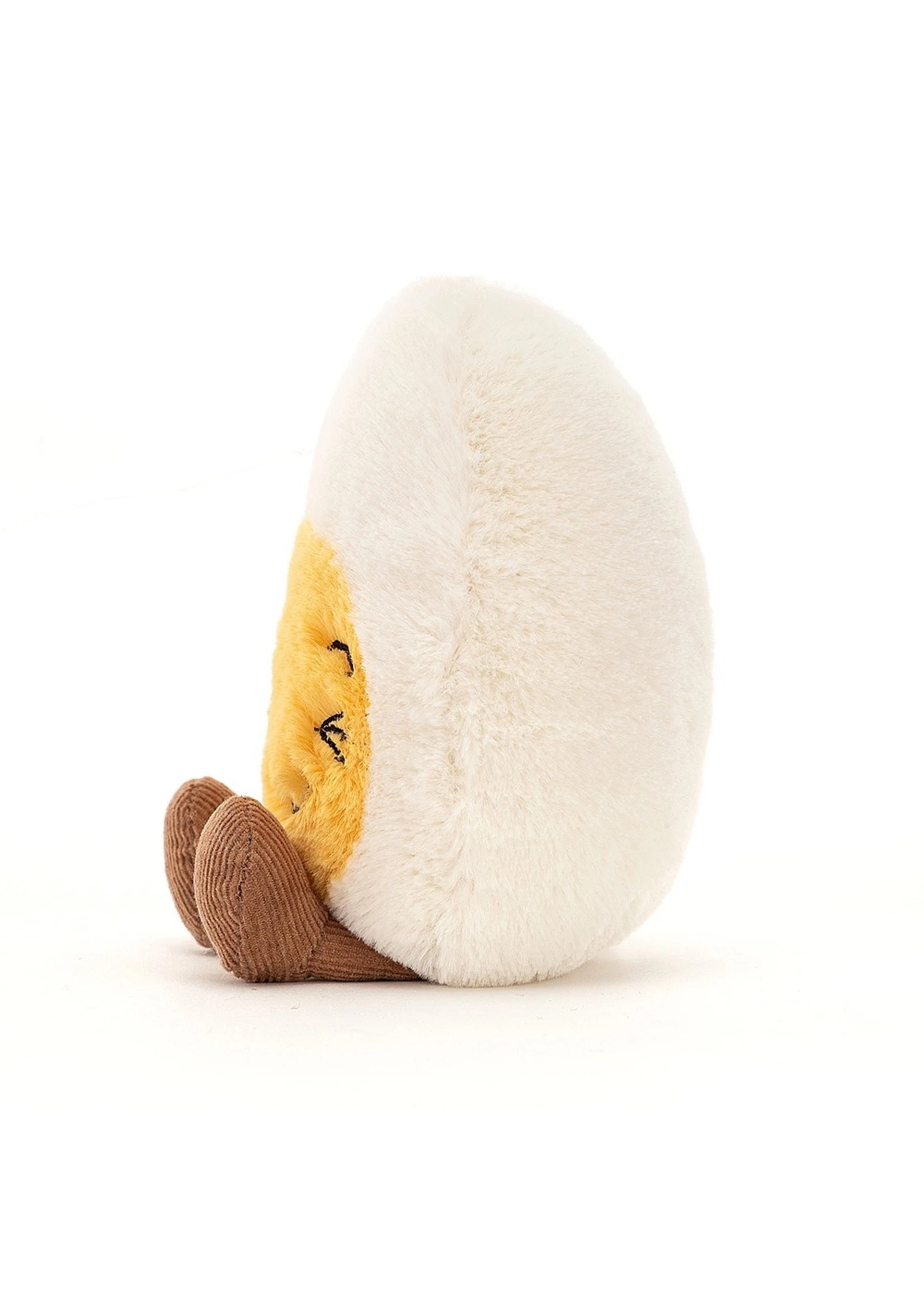 Boiled Egg Laughing is such a giggler, and is always telling yolks! Golden yellow and fluffy white, this chuckling chum is scrummily soft. With chocolate cord boots and a stitchy smile, this egg brings plenty of morning mirth!