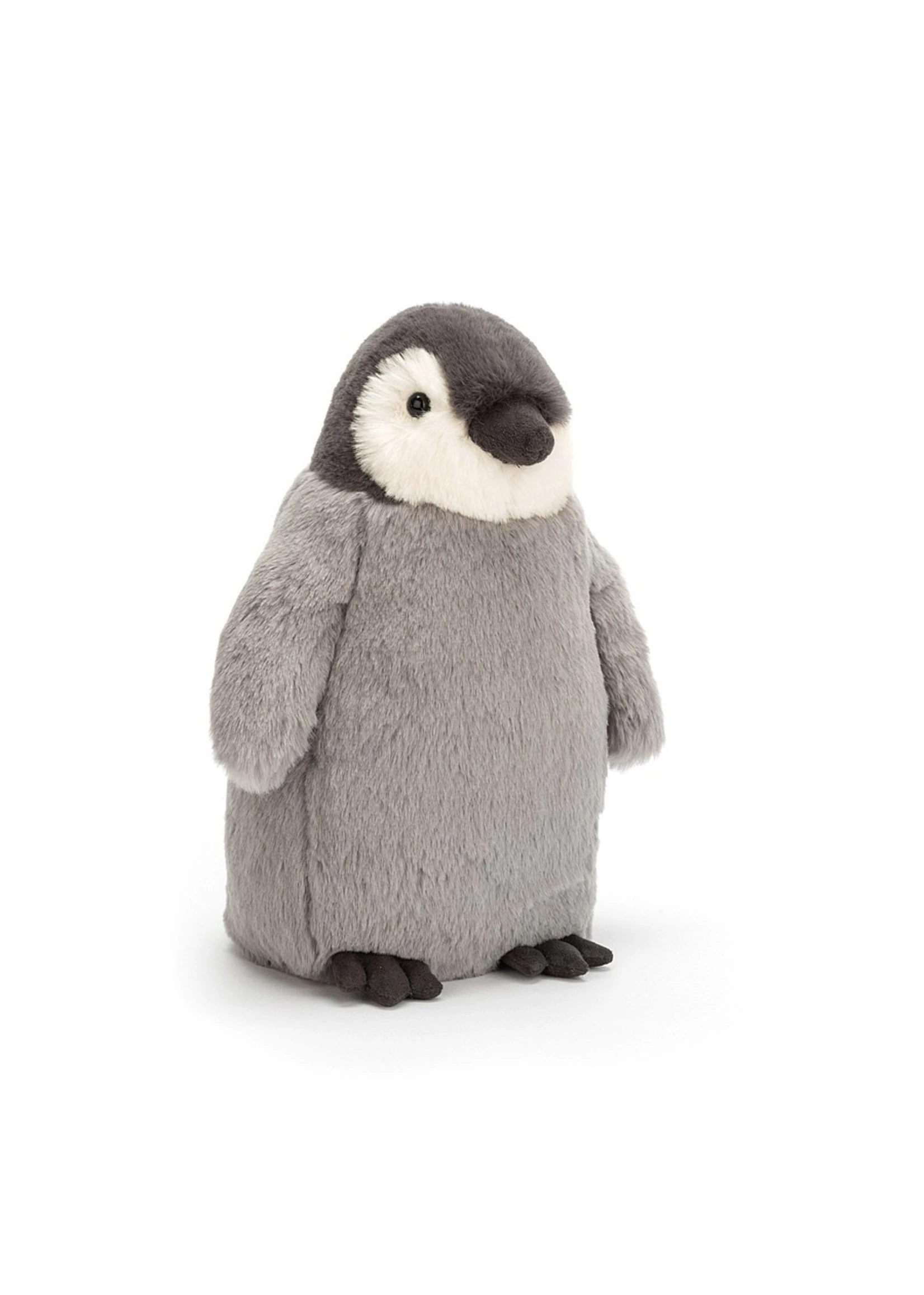 Perky little Percy Penguin will toddle and waddle right into your arms! A squat little sweetie, this fluffy grey chick still has his baby feathers! With supercute markings in charcoal and cream, he’s a proper little emperor!