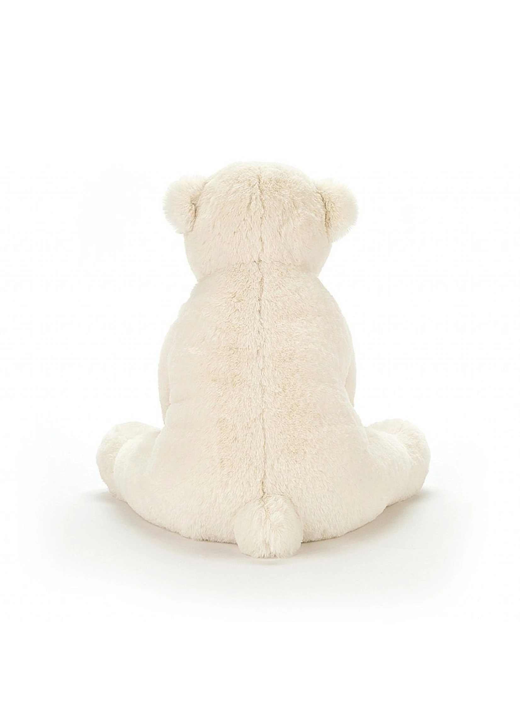 For the cosiest cuddles in the whole North Pole, skate on over to Perry Polar Bear! Unbelievably snuggly, this cloudy cream cub is as soft as freshly fallen snow. He sits so neatly on his beany bottom, and has the cutest bobble nose and nubbly tail. Hold him close and turn chilly days into silly days!