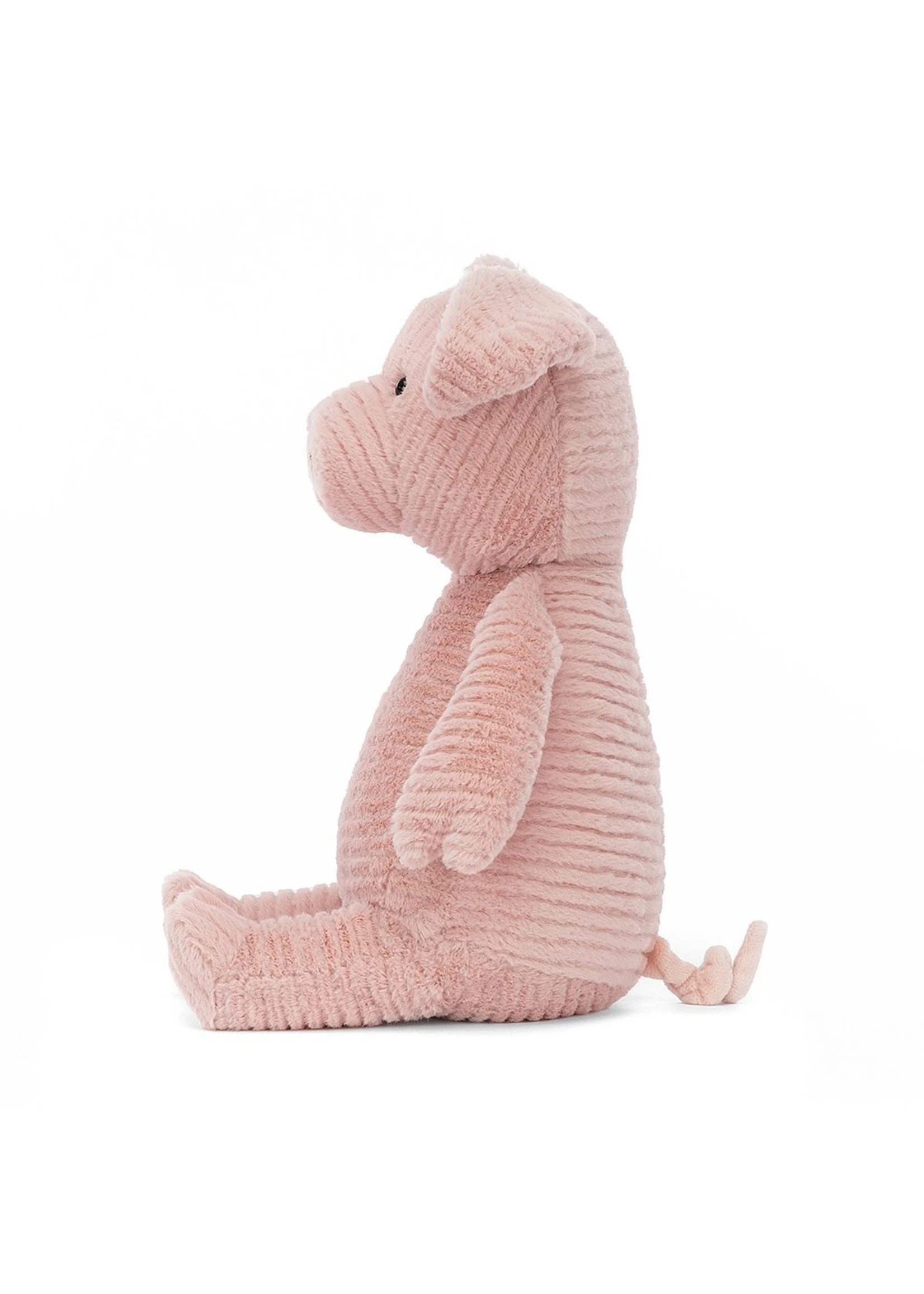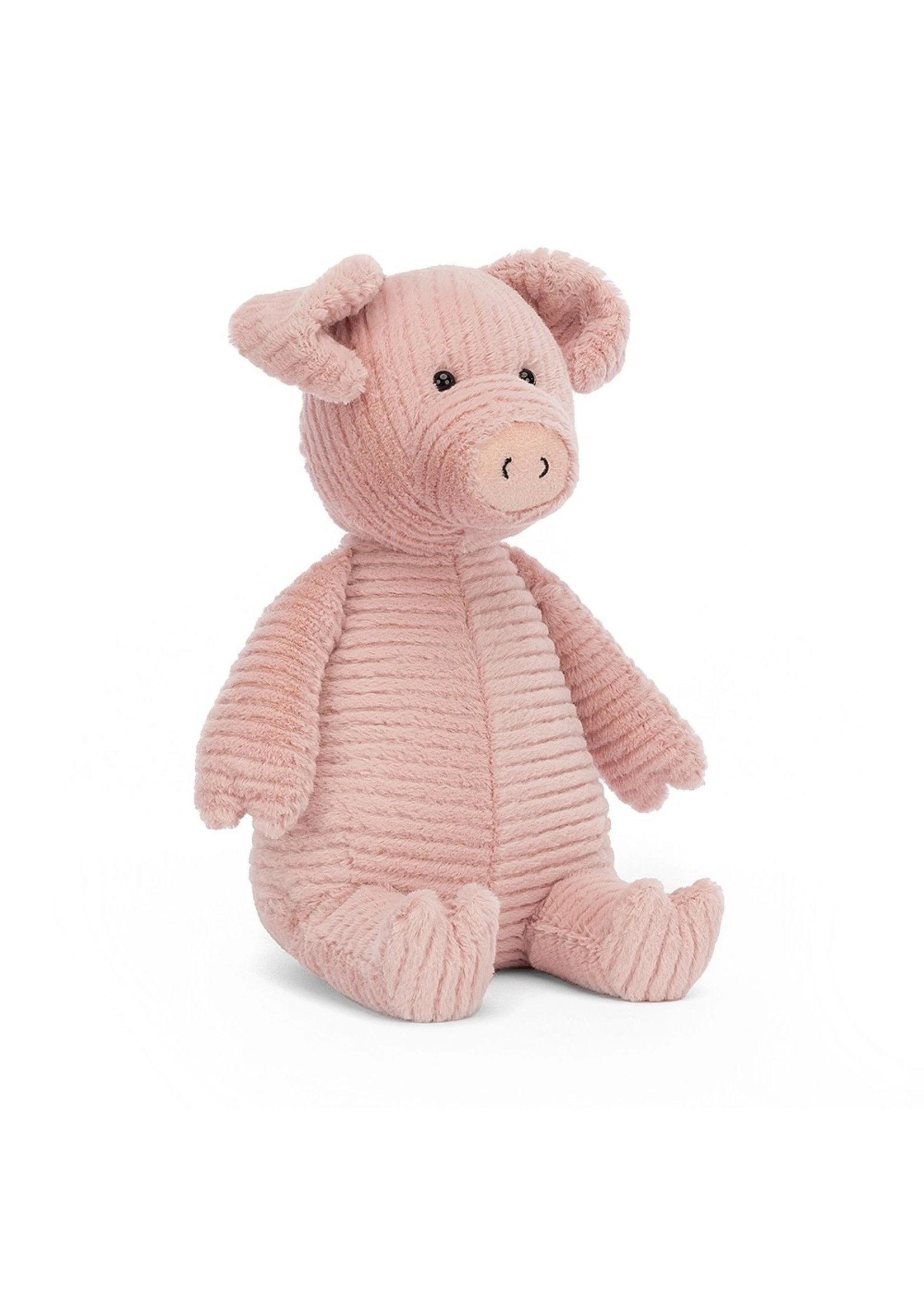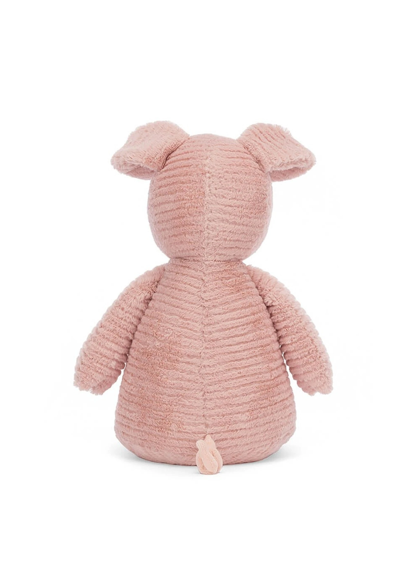 Did you ever see such twizzly ears? Quaxy Pig is starting farmyard fashion trends! Smoothie-pink in scrummy faux-cord, this posy piglet is a bedtime pal. With a springy curled tail and soft, squidgy trotters, bright inky eyes and a suedey snout, this podgy piggy goes hee-hee-hee, all the way home with you!Â