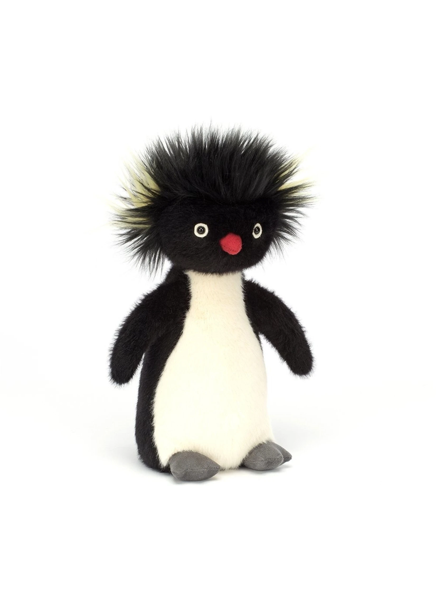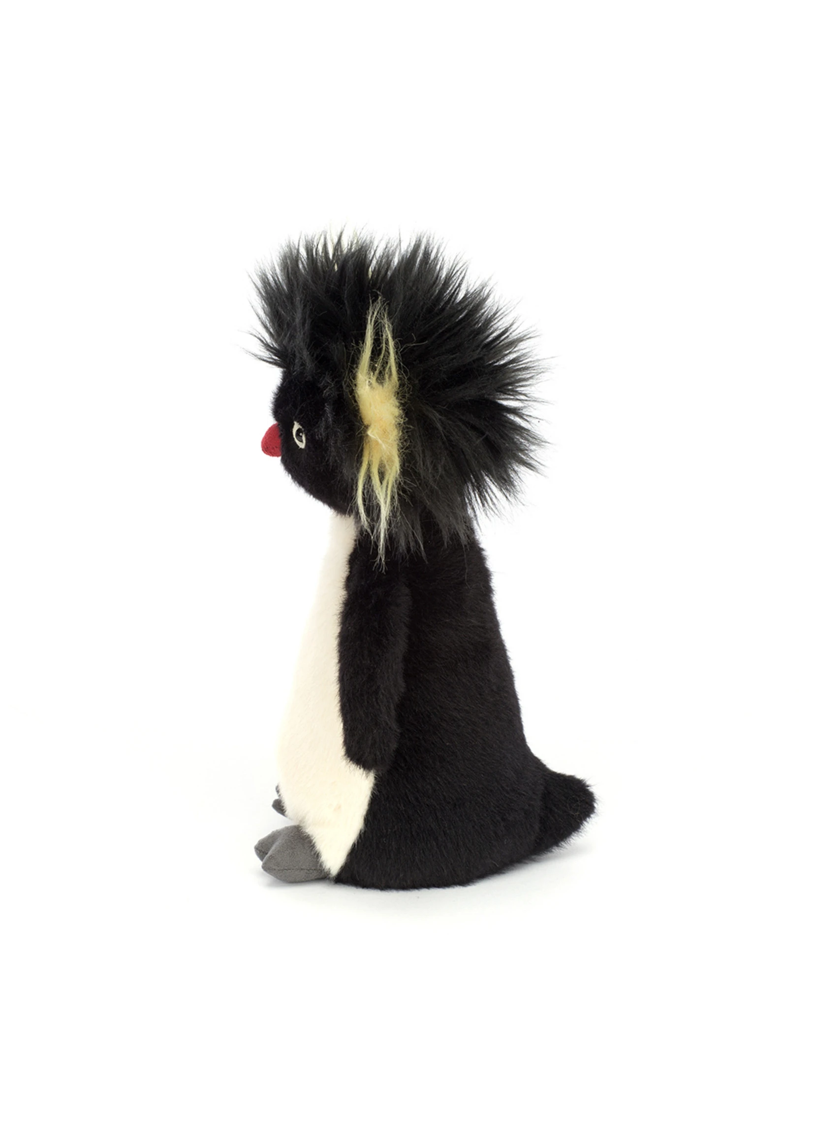 Ronnie Rockhopper Penguin is one punky, funky guy! This waddly wonder has silky-soft tufts of black and yellow fur. It’s the perfect hairdo for this quirky bird, with soft liquorice fur and an ice-cream tummy. With flappy wings, a rust-red beak and grey suedey claws, Ronnie’s a legend.Â