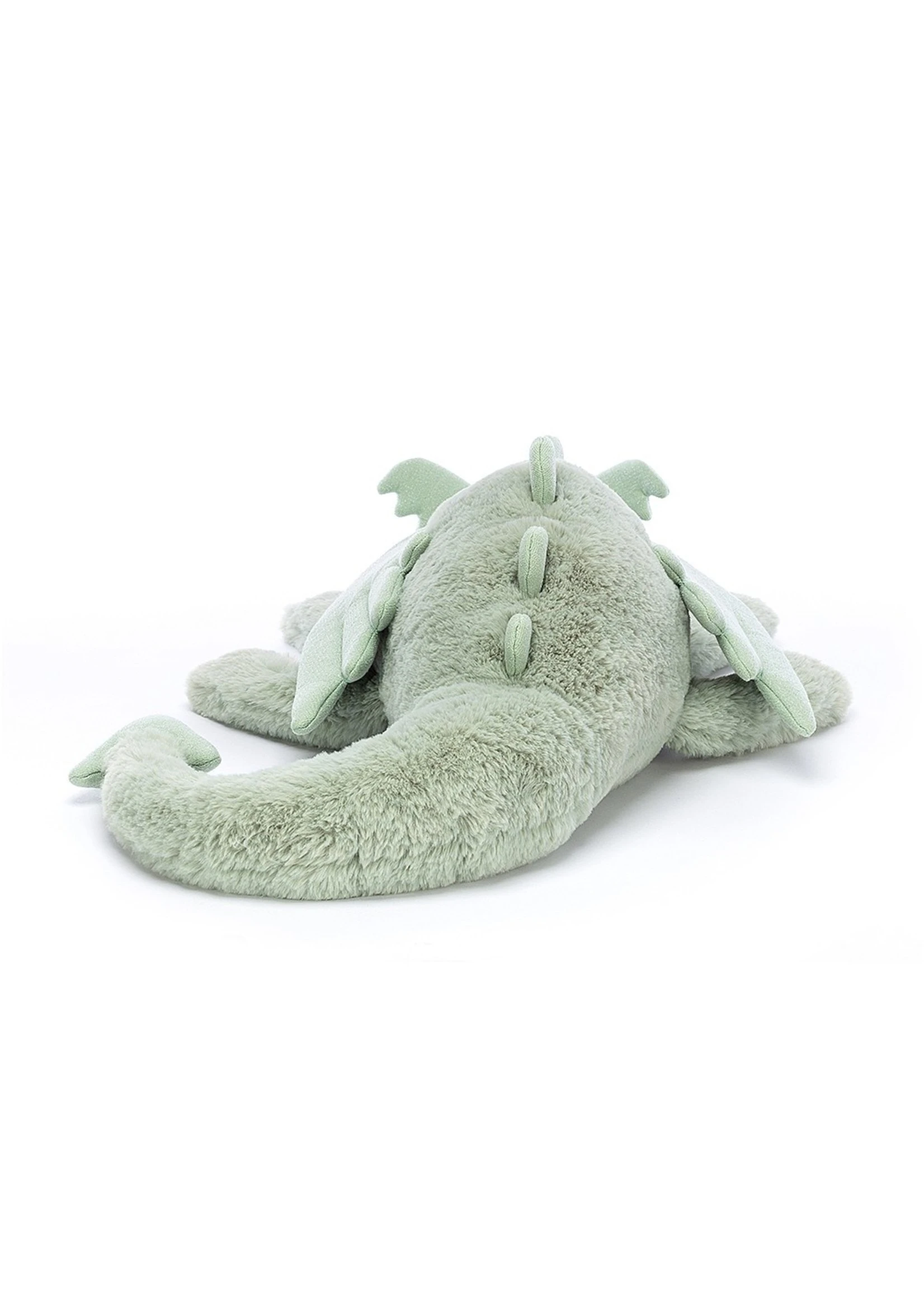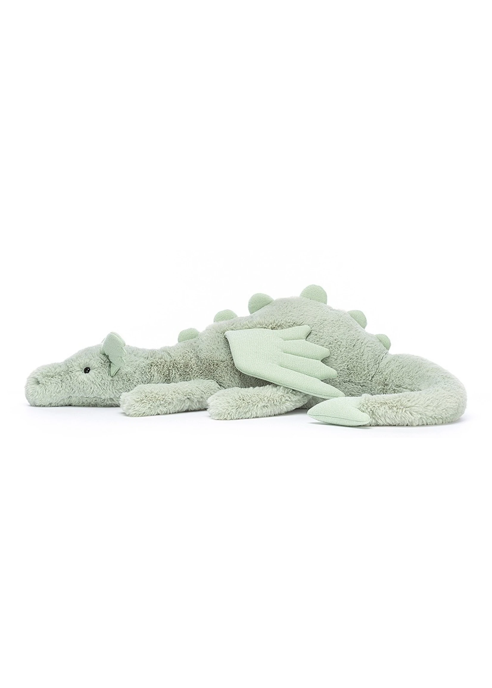 Doze and dream with sweet Sage Dragon. A curious cutie with waggle wings and minty-marvellous sparkle fur, this little legend has perky ears, squashy spines and a long, loopy tail. Dragons love stories, especially at bedtime, so spin some magical yarns!