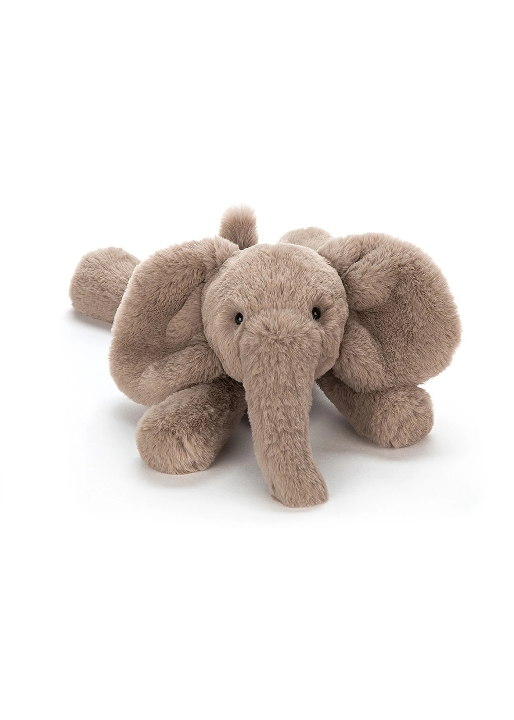 Smudge Elephant loves naptime, and keeps falling asleep on the march! Flop this supersoft silly down to sit on those squishable trumpet paws. With warm grey-brown fur, bright black eyes and great big fancy ears, Smudge Elephant is an adorable dreamer.