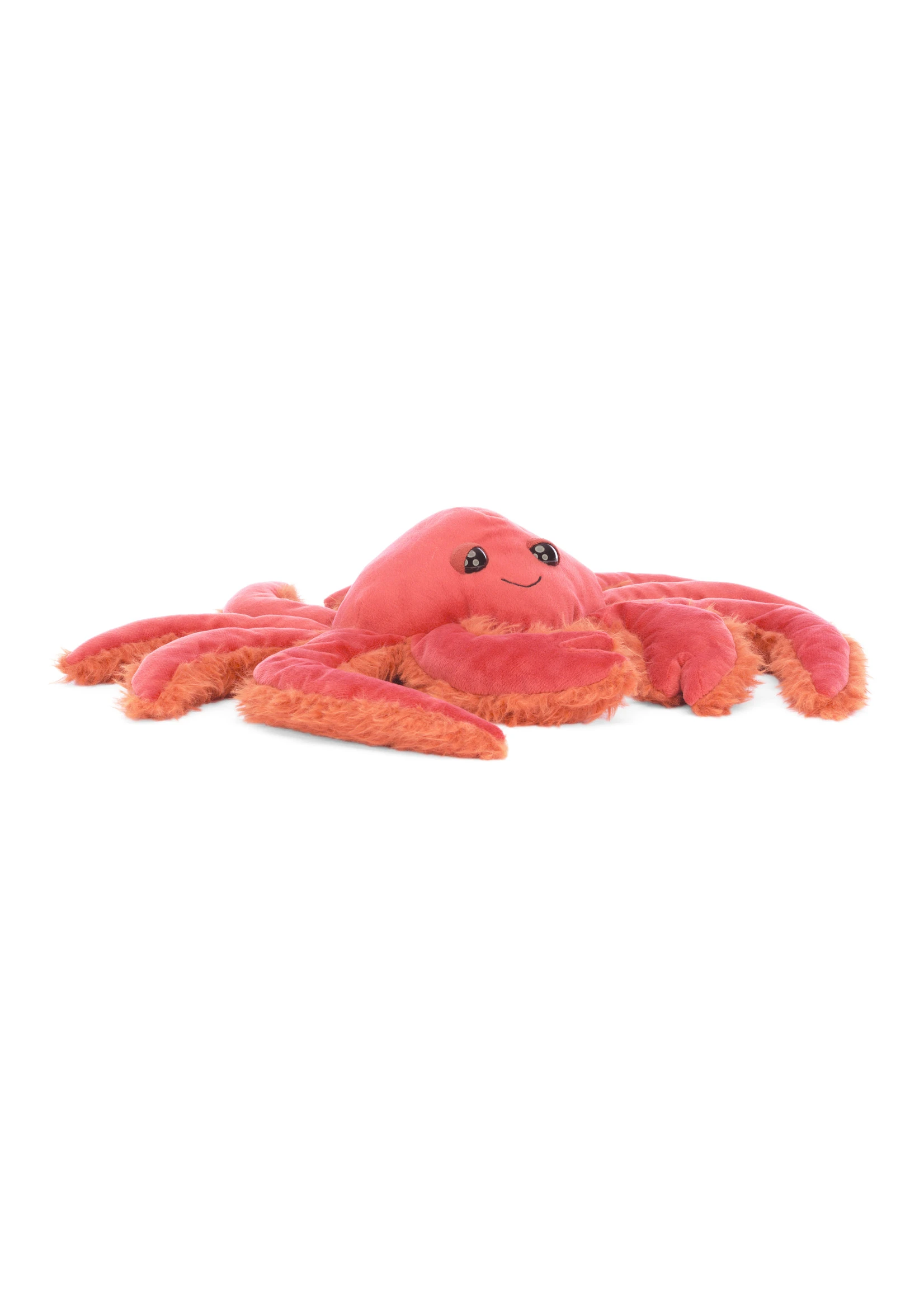 Ahh, it’s so nice to flop on the beach. Spindleshanks Crab has popped out of the rockpool to doze and laze on the soft, warm sand. This rust-red rascal has a nuzzly shell and lots of fuzzy two-tone legs. Spindleshanks may have two chunky claws, but they’re only for holding ice-creams!