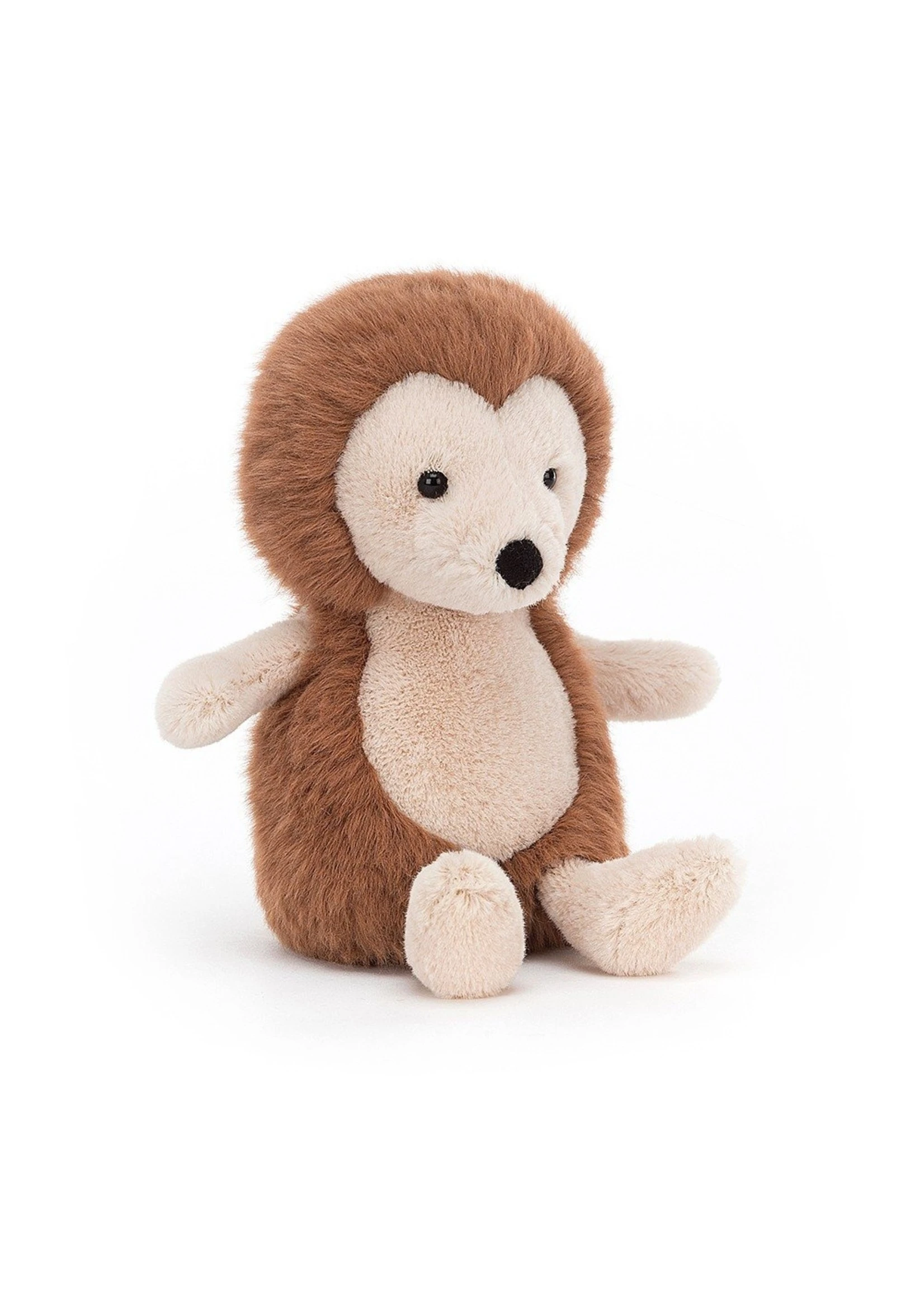 Willow Hedgehog is a snuffly truffle with a praline tummy and waggly legs. Snuggly, not spiky, with velvety spines, a heart-shaped face and a sweet snub nose, this hoglet’s just so huggable. Take Willow Hedgehog for twilight wanders, looking for interesting bugs!