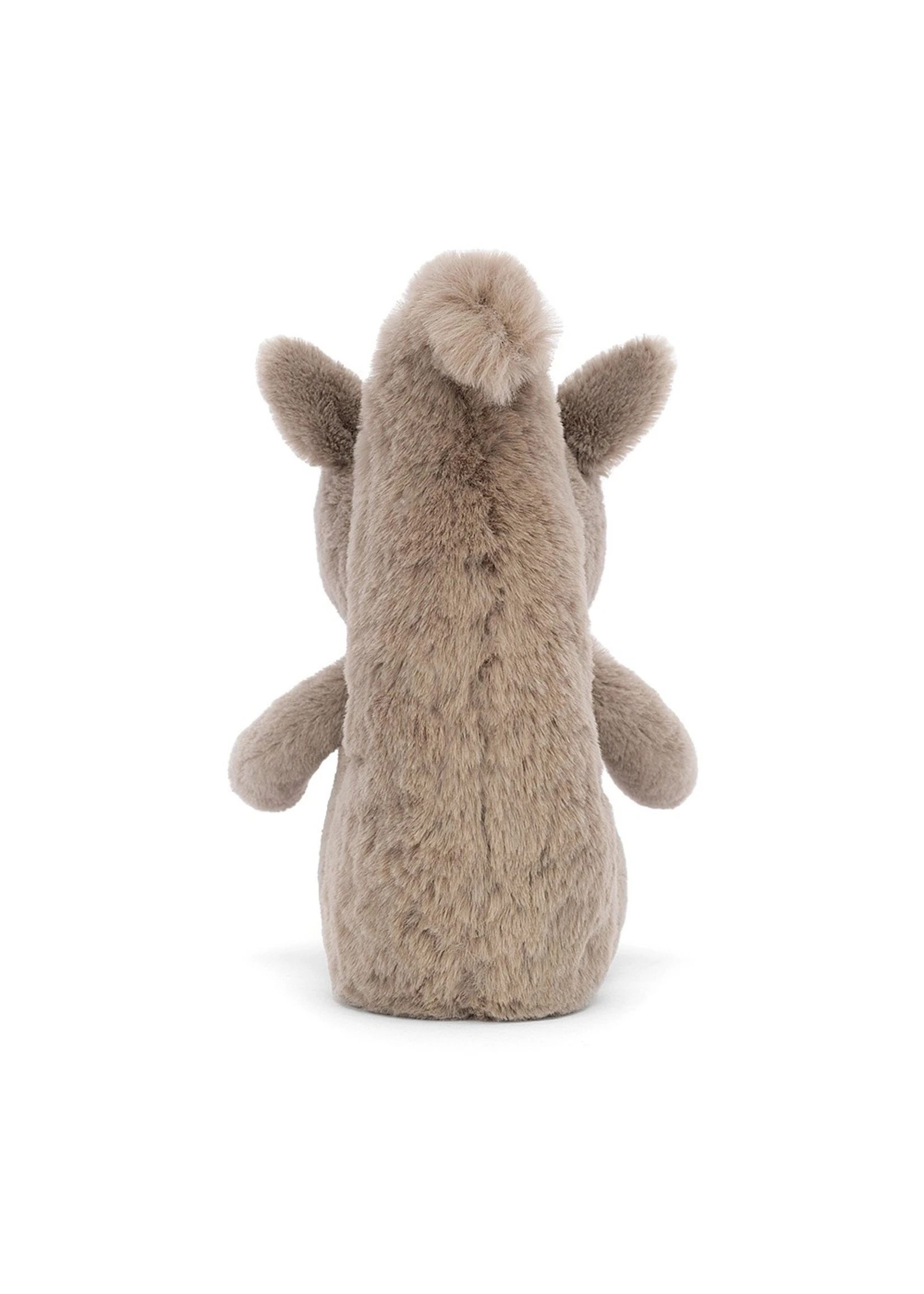 Affable scrambler Willow Squirrel has just put the kettle on. Want some acorn tea? So very soft in latte fur, with a suedey pip nose and huge floofy tail, Willow has such perky leaf ears and a beany bottom for sitting on tree stumps. This little squirrel loves fairy tales – do you have any to share?
