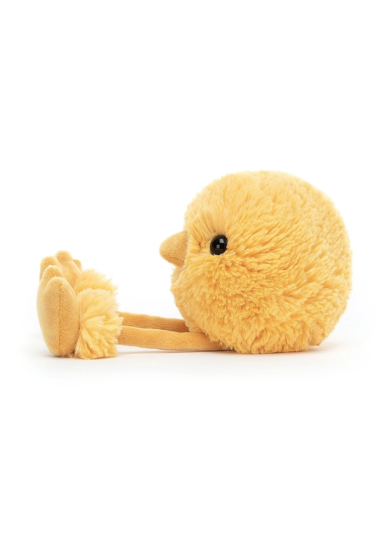 A busy ball of bumbly, banana-yellow sass! Zingy Chick Yellow is great fun, whether perched on a shelf or bobbing up and down on those long, loopy legs. A joyful, fluffy companion to keep by your side.