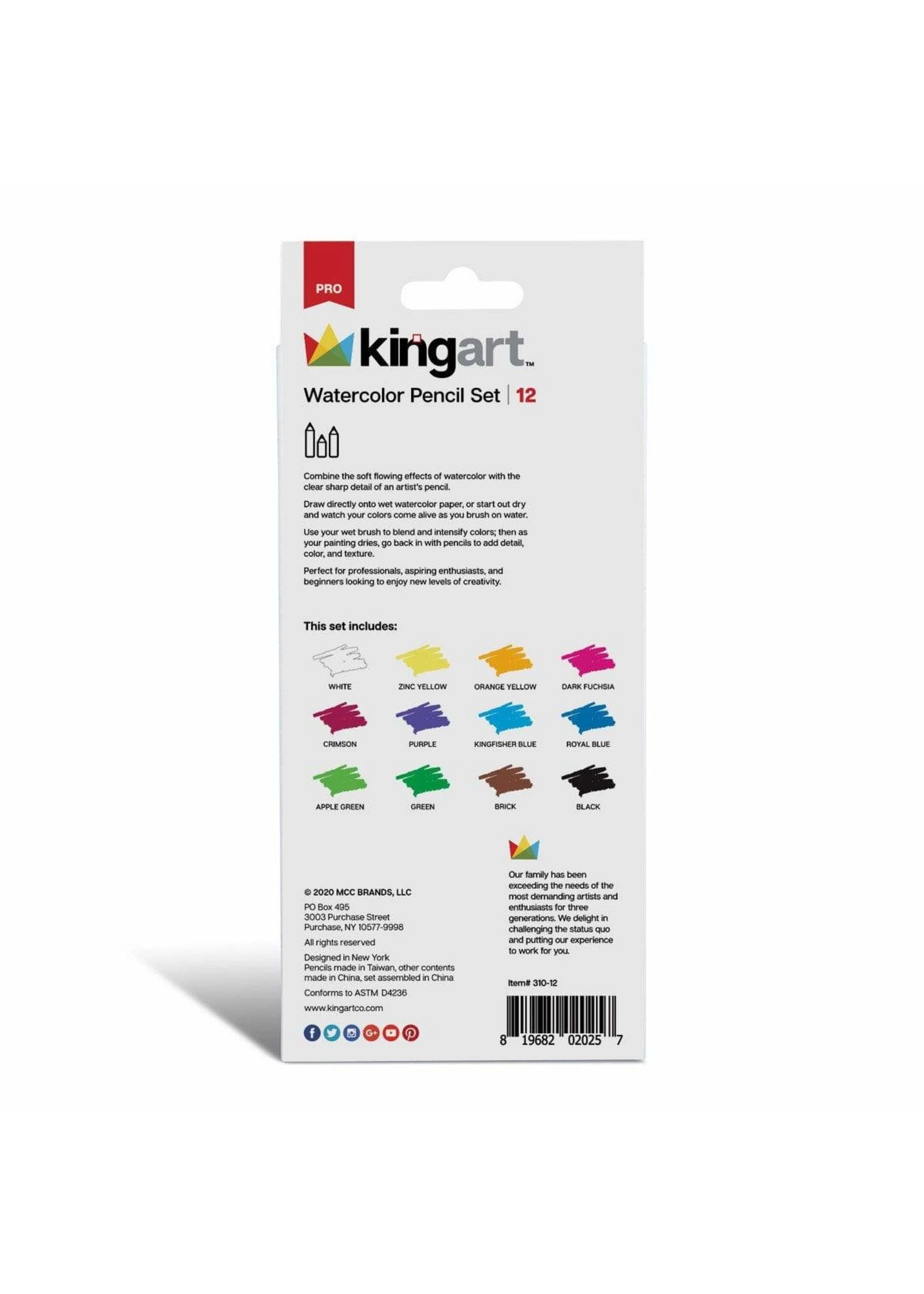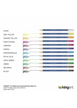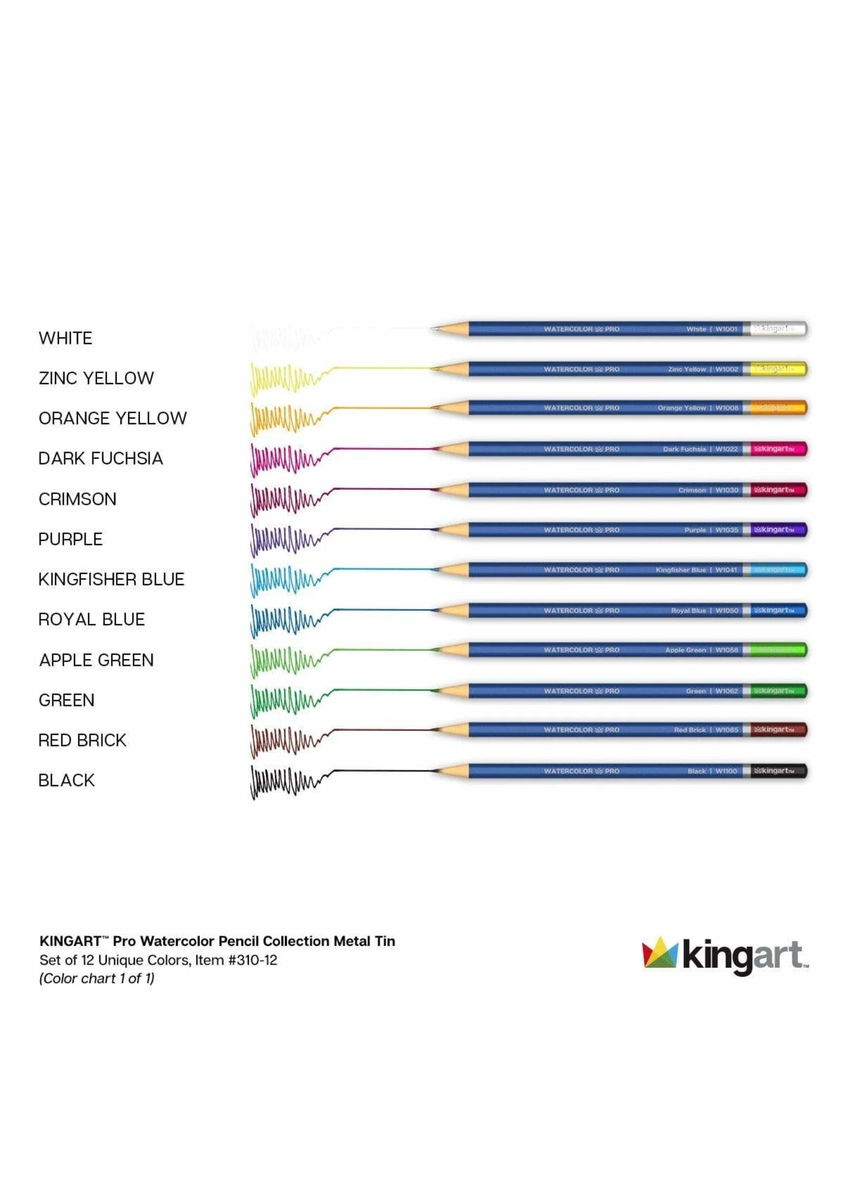Kingart Pro Watercolor Pencils in Tin – 12 Unique Colors