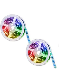 So versatile! Two 16′ strips of 150 LEDs each, 300 lights total, that you can control with your voice! (Using Google Assistant or Alexa.) Or use the Bluetooth controller to create ambiance for movie nights, or set the mood for your morning routine. They even have a sensitive, built-in microphone that lets you sync them up to your favorite music. Adhesive and cuttable strips allow for easy installation on any clean, dry surface. Use the remote or your phone (app included) to program countless colors – and modes from solid, to strobe, to sound responsive. Comes with AC adapter. Cell battery included.
