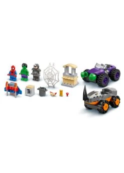 - Gift for kids who love vehicles – LEGO® Marvel Spidey And His Amazing Friends Hulk vs. Rhino Truck Showdown (10782) comes with 2 LEGO vehicles, 3 minifigures, a Spider-Man jet pack and a bank vault