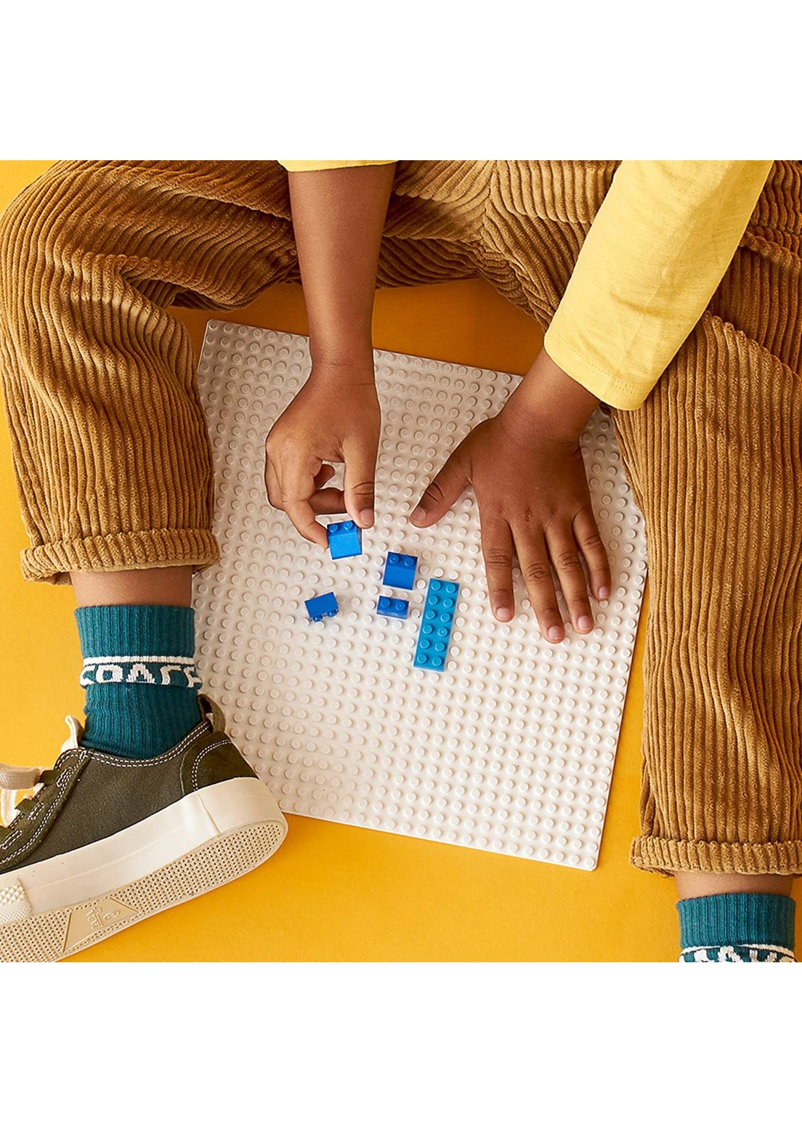 Never before has a white LEGO baseplate as large as this been available! Measuring over 10” (25cm) square, this bright white building toy gives builders a spacious 32×32-stud LEGO landscape on which to build, play and display. Inspire LEGO builders with a dazzling array of building possibilities, from frozen lakes to snowy mountains and sunny beaches to spaceships! Who says the base must be at the bottom? This quality baseplate has enough grip to hold building bricks at any angle, even upside down (great for kids’ superhero adventures! ) but releases them with minimal effort. And when the building stops, the firm baseplate gives kids a collapse-free way to transport and display their cool creations. LEGO Classic sets put self-expression and open-ended play into kids’ hands. And as they build, create and imagine, their free-thinking and problem-solving skills keep on growing!Â