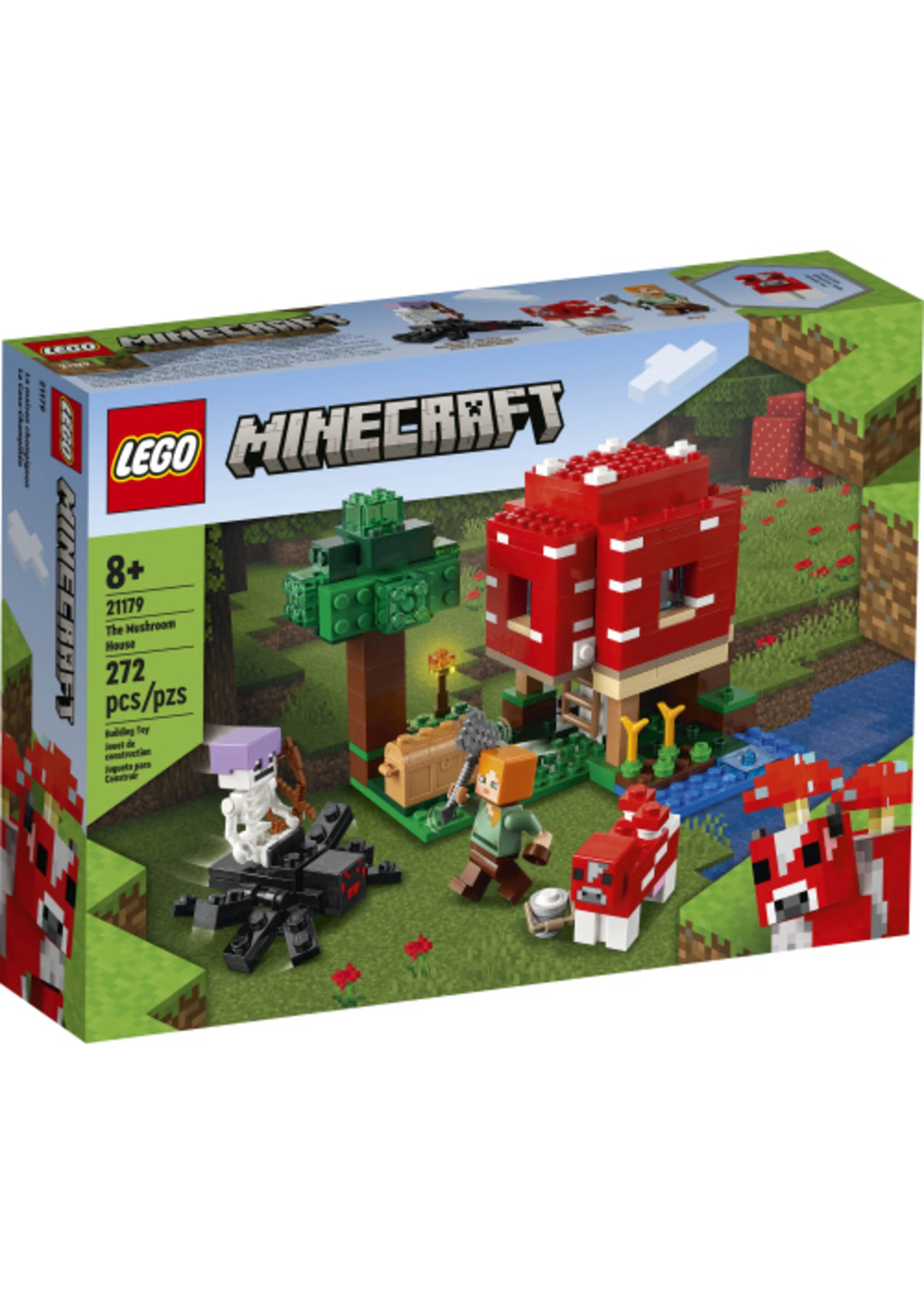 - Inspire imaginations – Kids can lift off the roof and walls to access the house interior. Outside, there’s a mooshroom to milk and a skeleton spider jockey to battle
