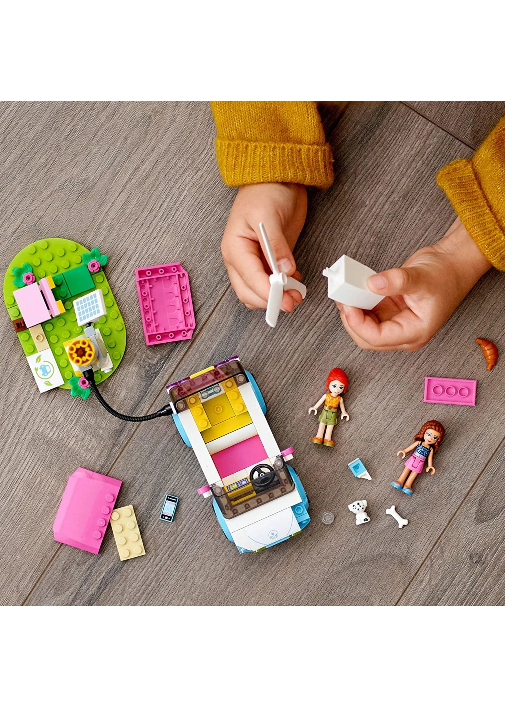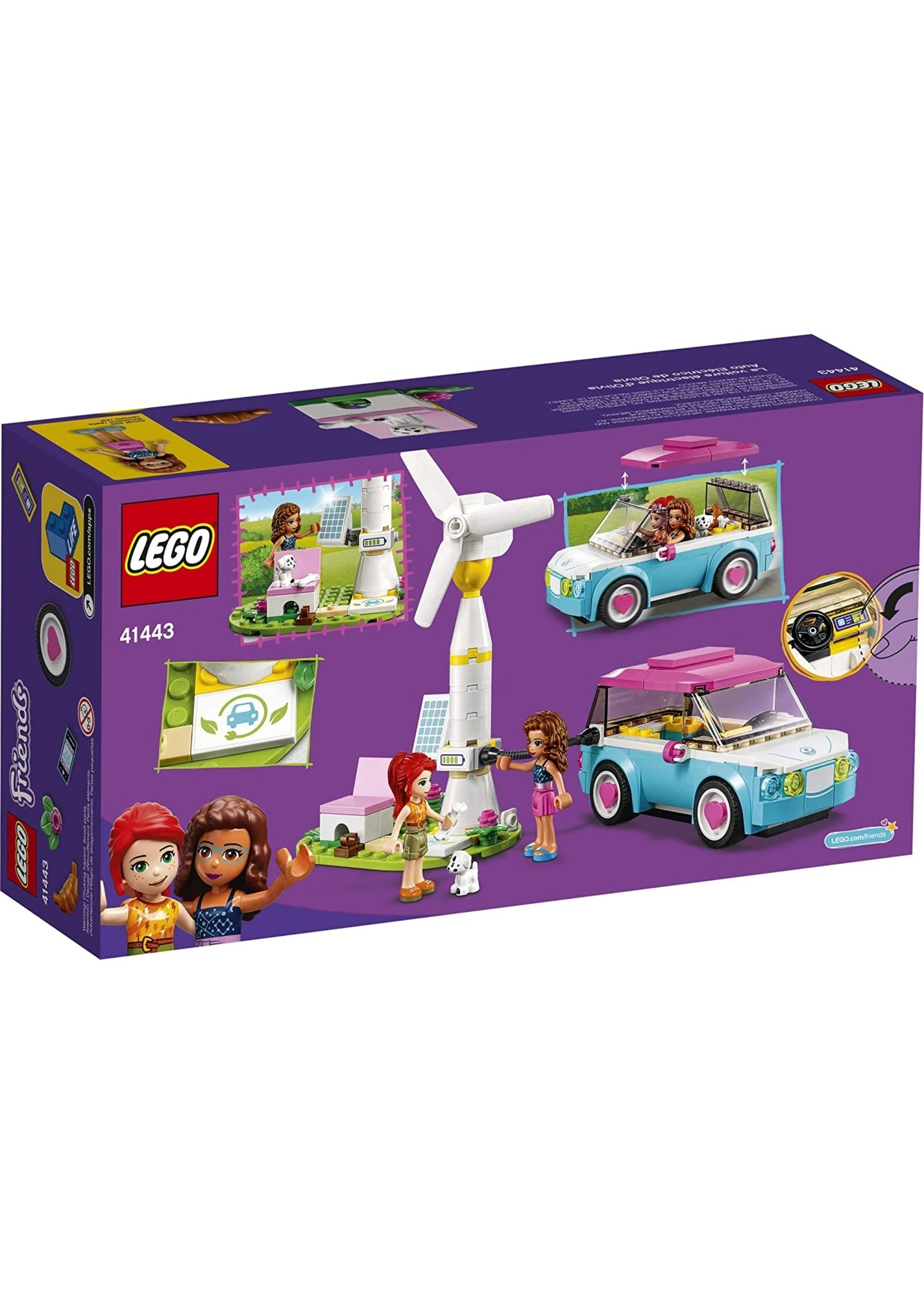 - LEGO® Friends Olivia’s Electric Car (41443) is the perfect playset for kids who love vehicles and the environment. The buildable toy car sparks creative storytelling and open-ended adventures!