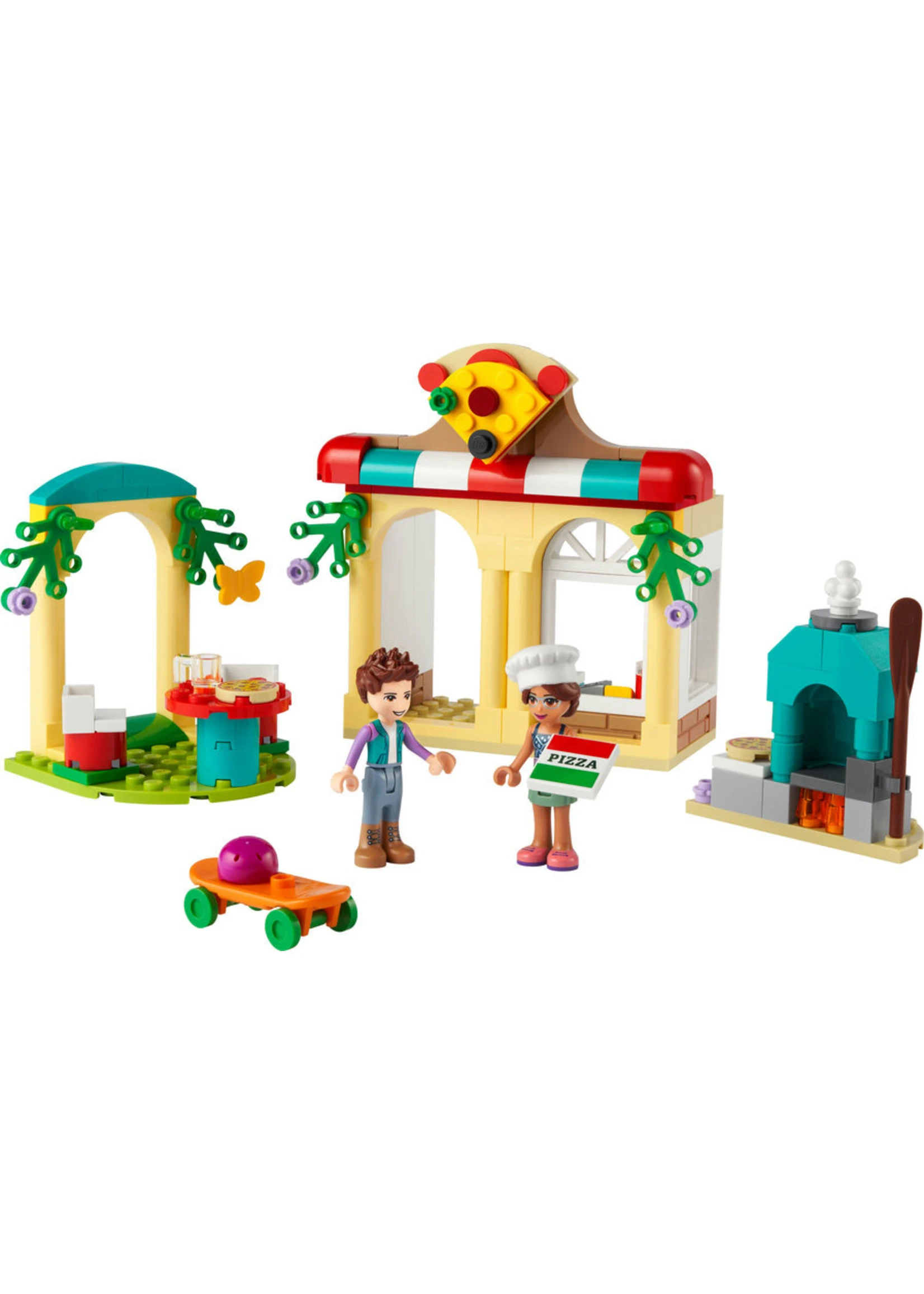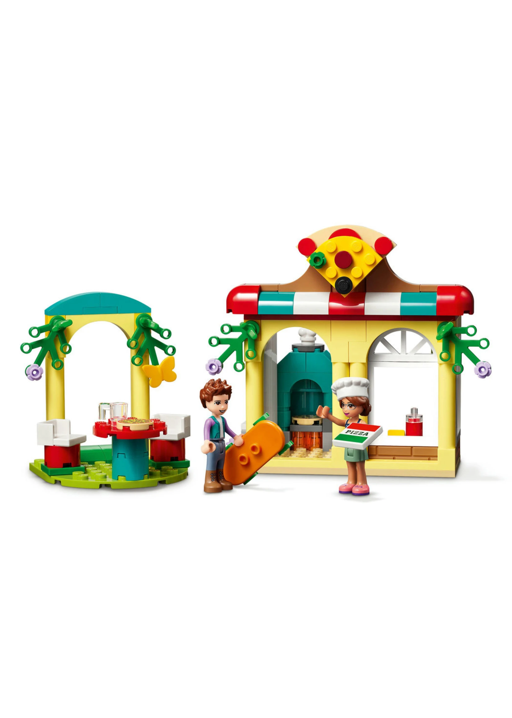 - Gift for pizza lovers – Includes LEGO® Friends Olivia and Ethan, a separate outdoor seating area, pretend pizza oven, pizza paddle, skateboard and food toys such as cheese, a grater and a sauce bottle