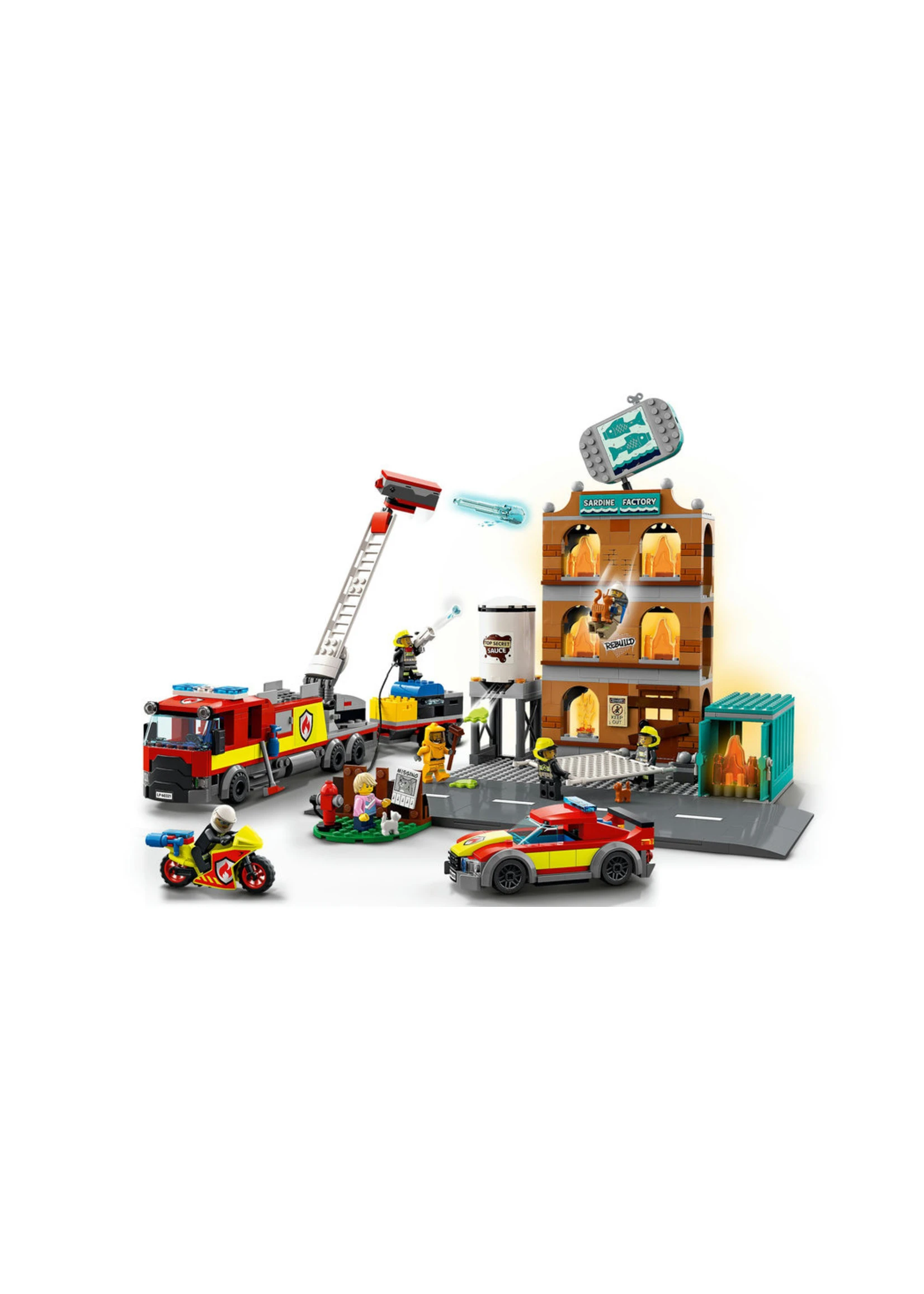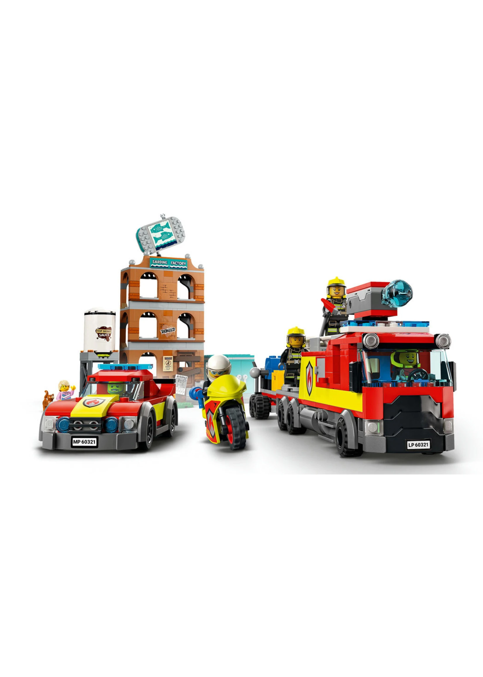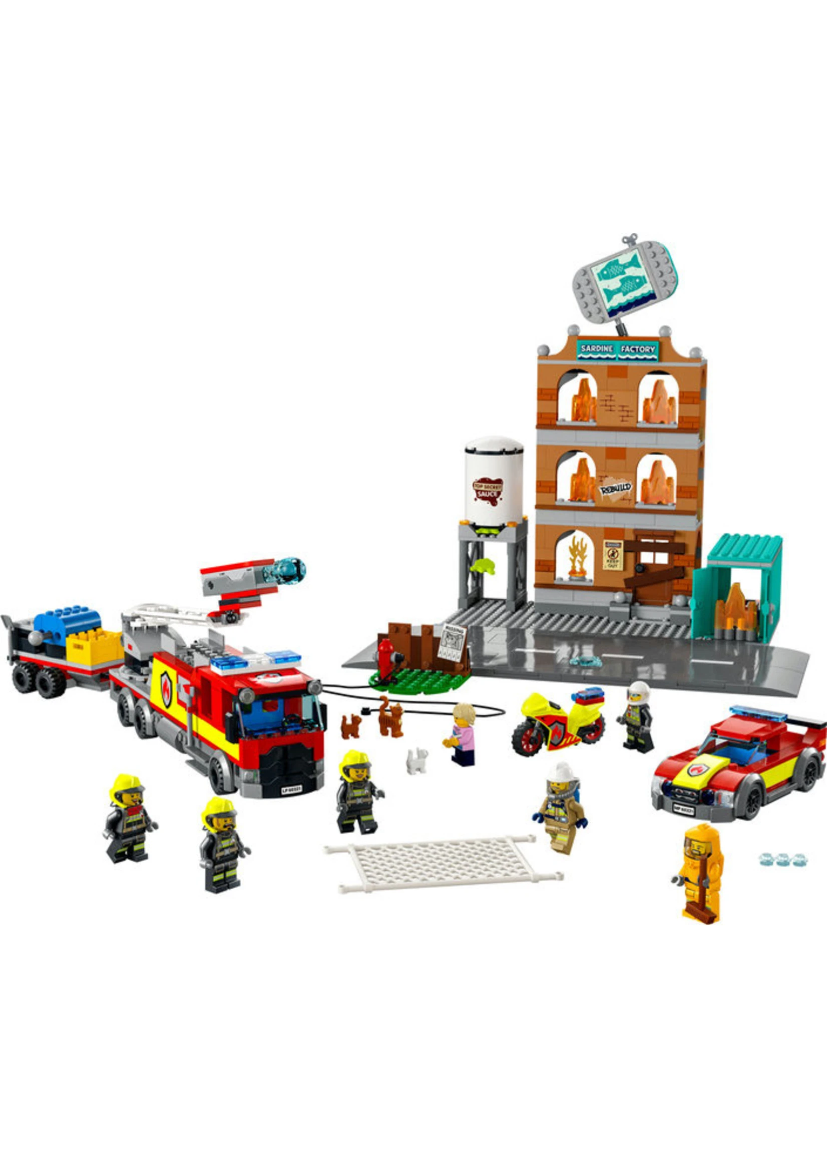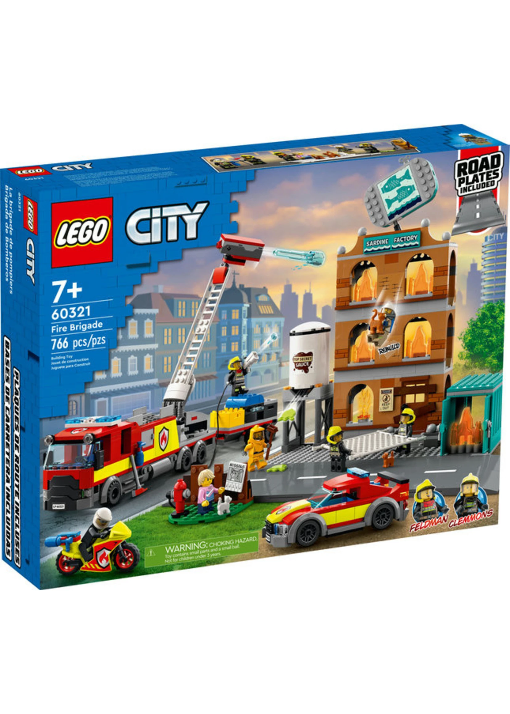 This LEGO® City Fire Brigade (60321) toy playset is packed with inspiration for imaginative play. Designed for ages 7 and up, it includes a 3-level sardine factory with fold-back LEGO flames and a ‘secret sauce’ vat, plus a firetruck and trailer that shoot water elements, a fire motorbike and a fire chief’s pickup. Add the kitten and cat figures and 7 minifigures, including 2 LEGO City TV characters, and let the play begin!