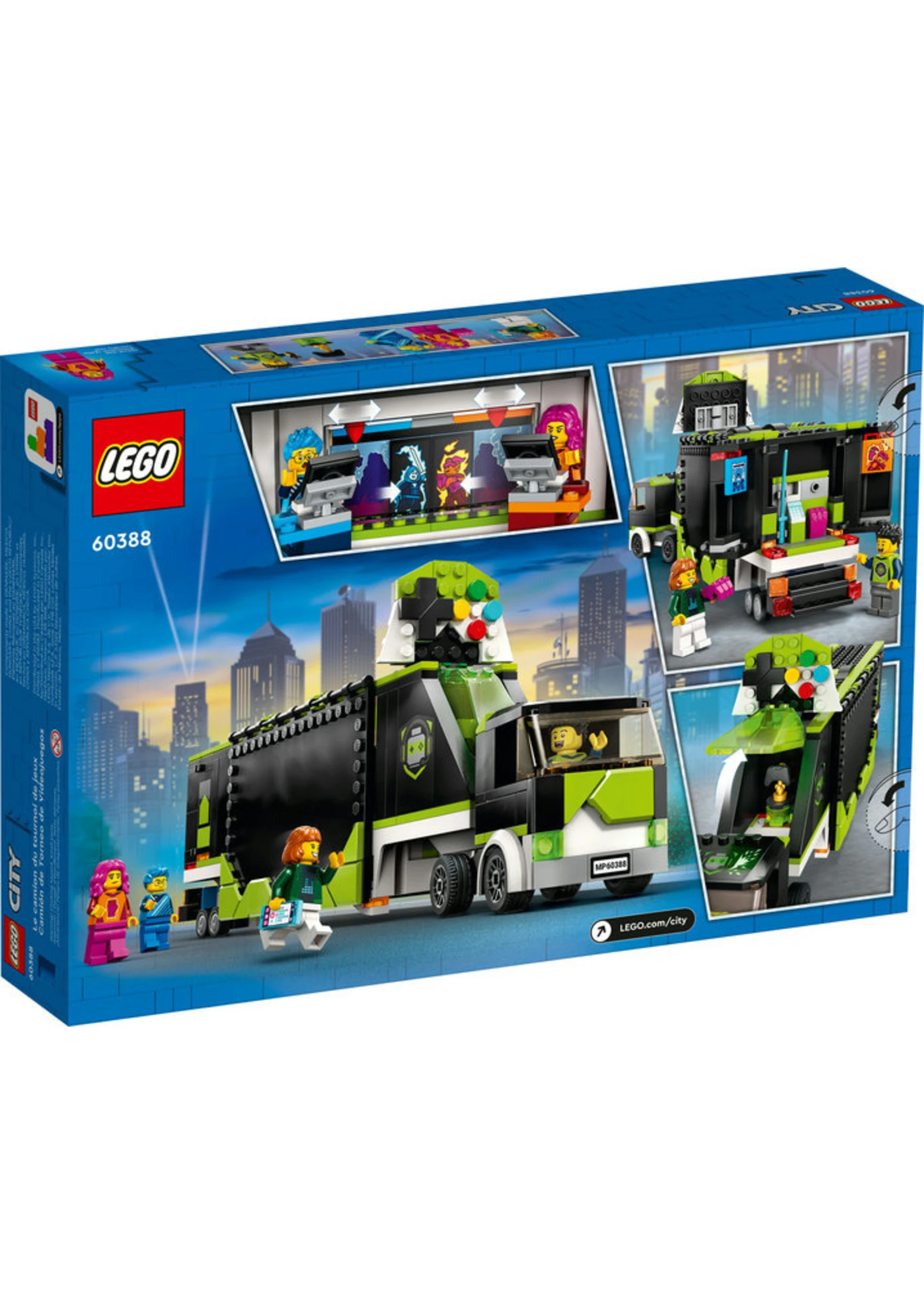 - Gaming tournament playset – The LEGO® City Gaming Tournament Truck (60388) is loaded with equipment for staging imaginary gaming competitions