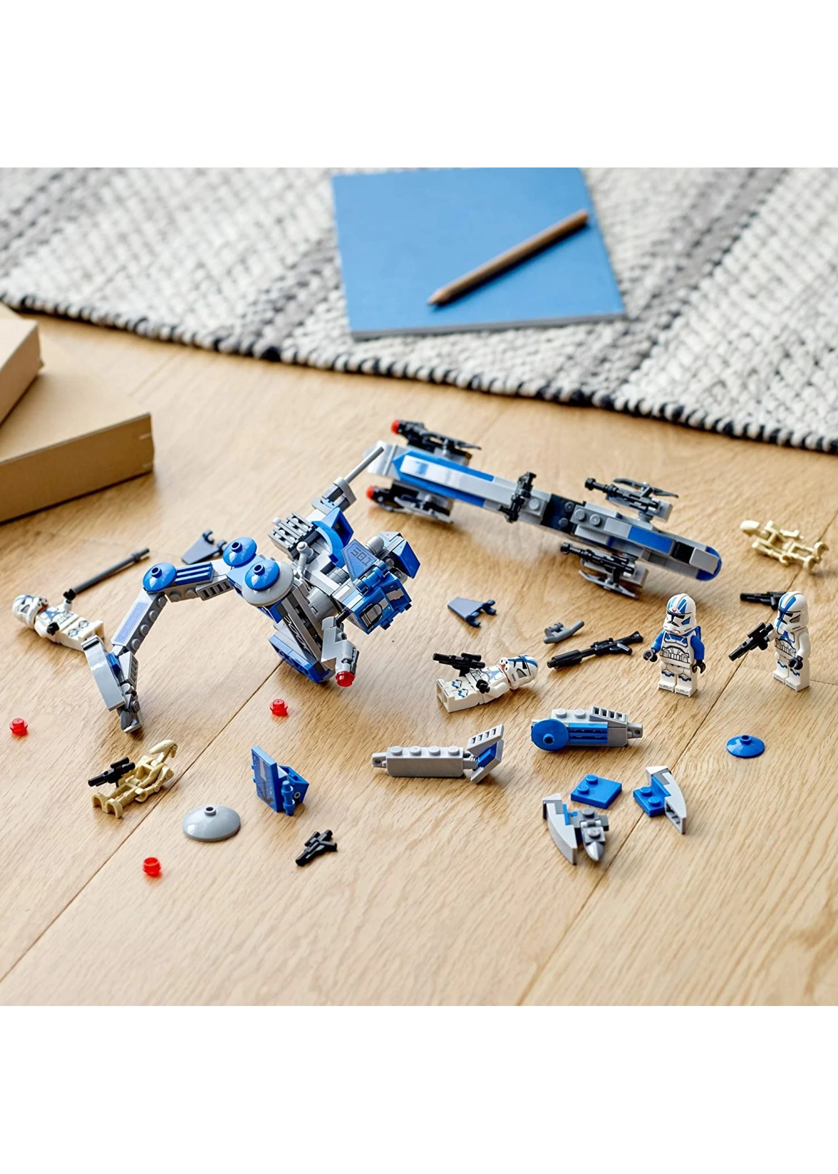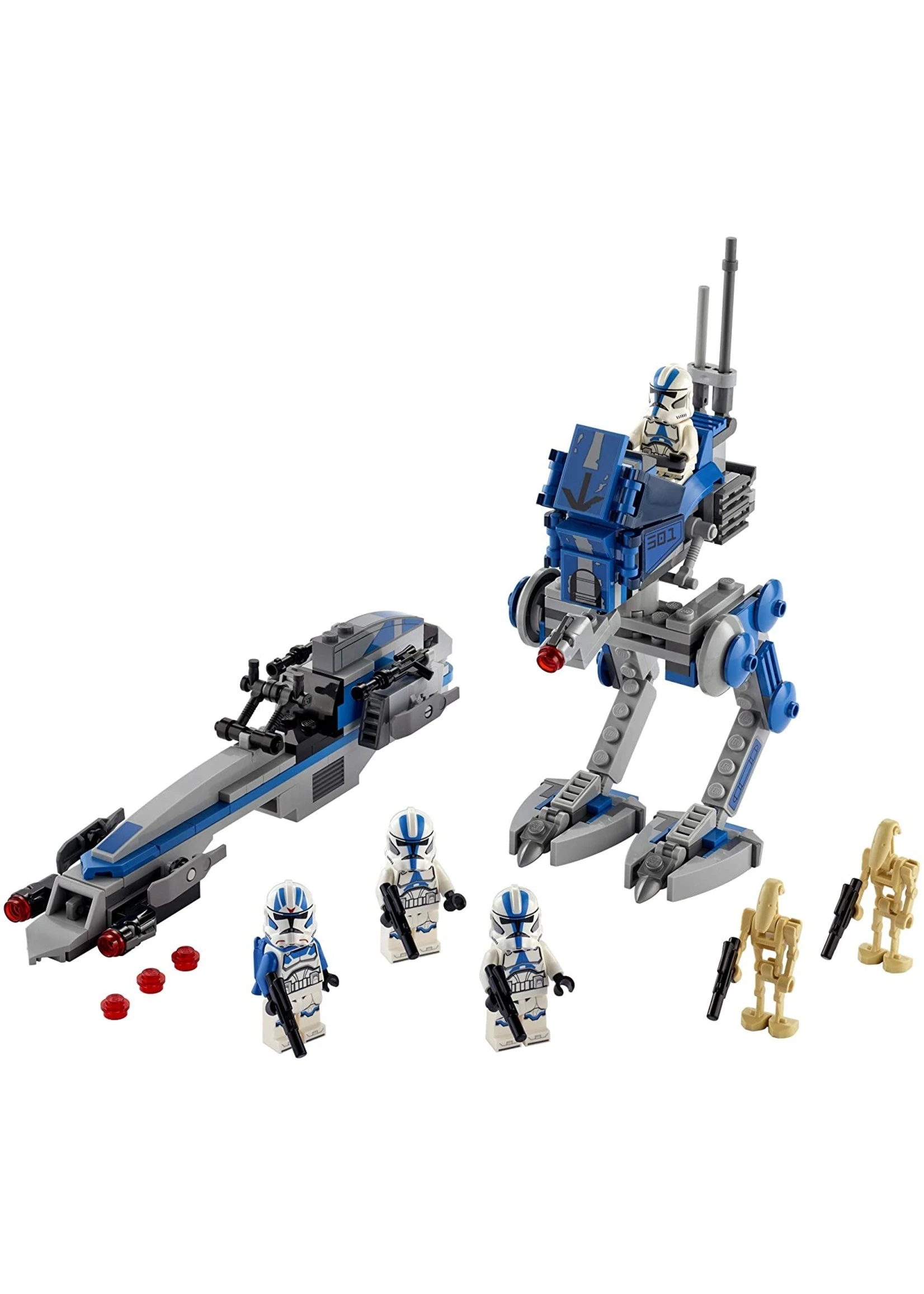 - This LEGO® Star Wars™ building kit includes 4 LEGO minifigures: 3 new-for-2020 501st Clone Troopers and a 501st Jet Trooper, with jetpack element, plus 2 Battle Droids and weapons for battles.