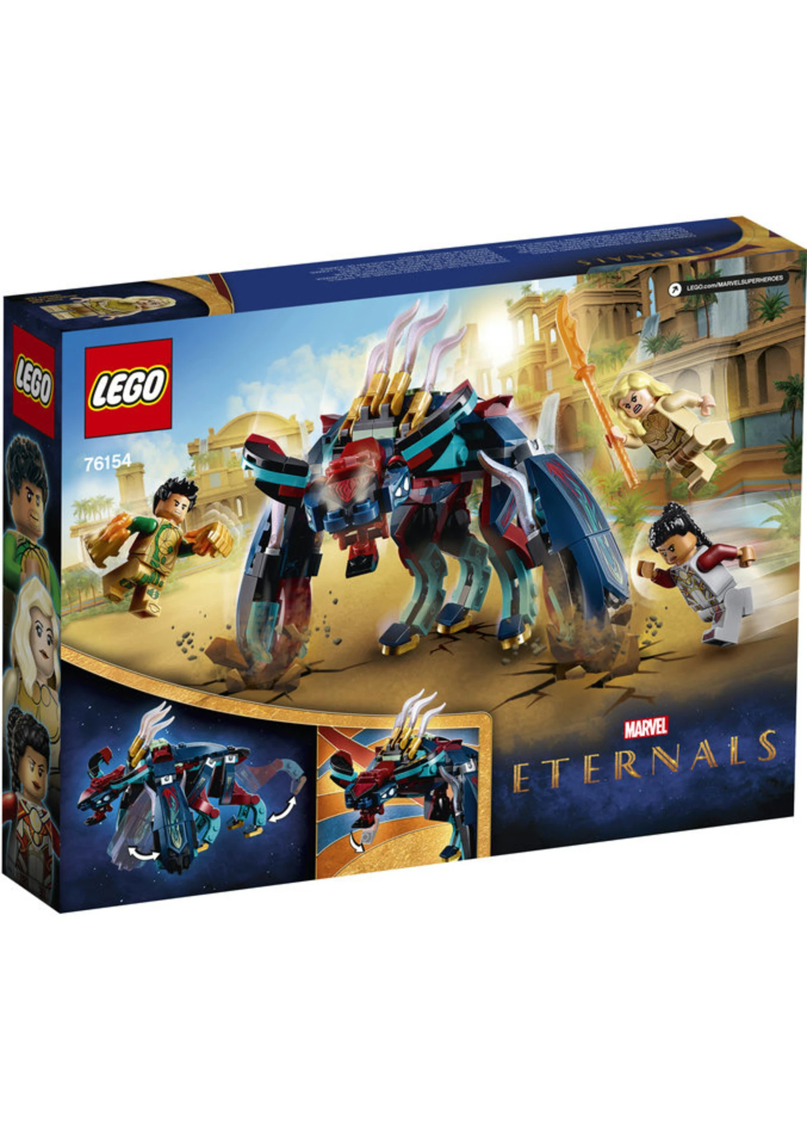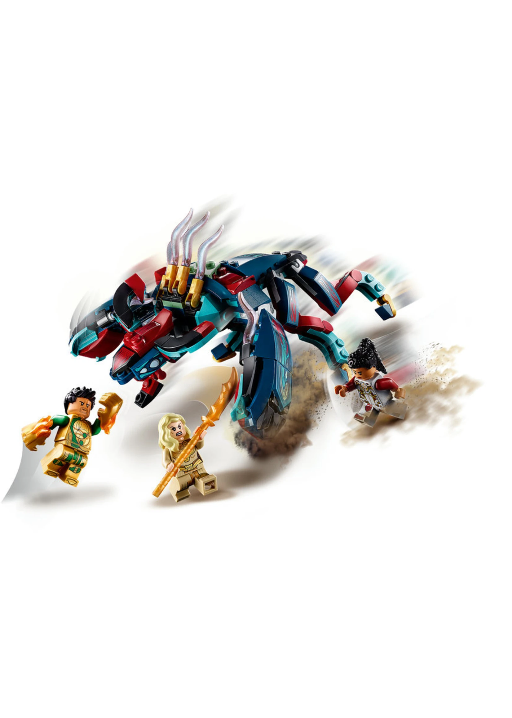 - Includes 3 LEGO® Marvel Eternals superhero minifigures – Thena, Makkari and the exclusive Gilgamesh – a posable, 6-legged Deviant with an open-and-close mouth, a dagger, fist weapon and a shooter.