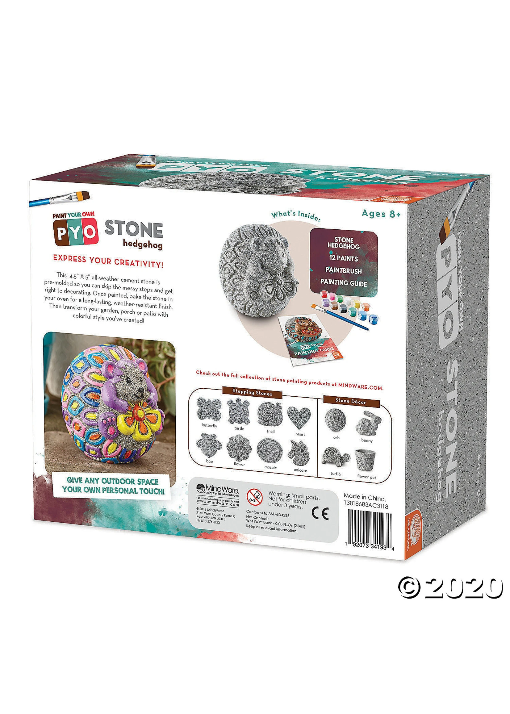 MindWare’s Paint Your Own Stone Decorations are not simply designed to be crafts for kids—they’re alfresco art projects for all ages! Create your own whimsical, hand-painted stone décor perfect for porches, patios and decks. No cement mixing or messy prep work is required; the stone Hedgehog is ready to paint, right out of the box. Vibrant paints encourage mixing, blending and special effects. Oven-bake your painted creation for a long-lasting, weather-resistant finish.