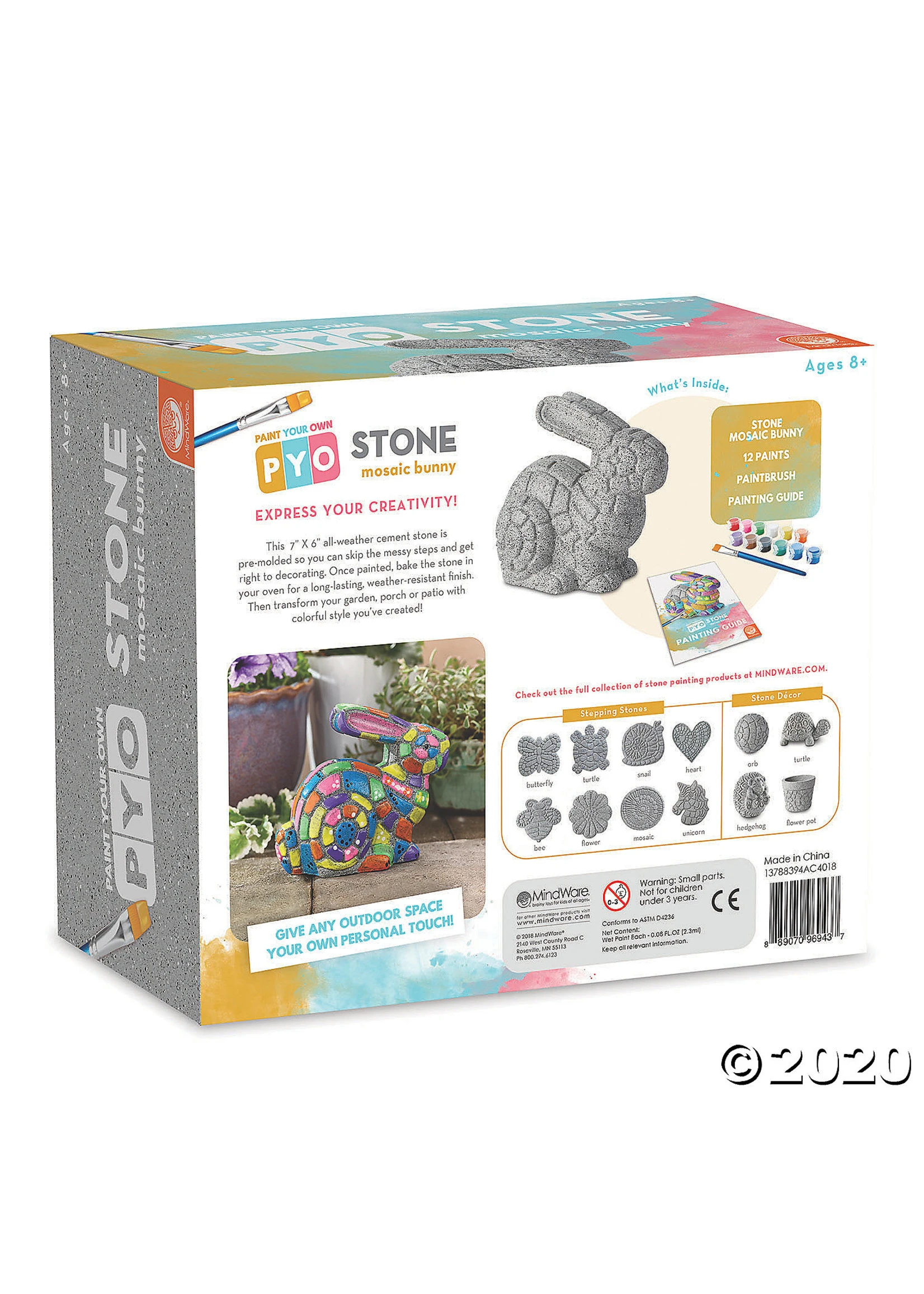 MindWare’s Paint Your Own Stone Decorations are not simply designed to be crafts for kids—they’re alfresco art projects for all ages! Create your own whimsical, hand-painted stone décor, perfect for porches, patios and decks. No cement mixing or messy prep work is required; the 5-1/2” tall stone Garden Bunny is ready to paint, right out of the box. Vibrant paints encourage mixing, blending and special effects. Oven-bake your painted creation for a long-lasting, weather-resistant finish.