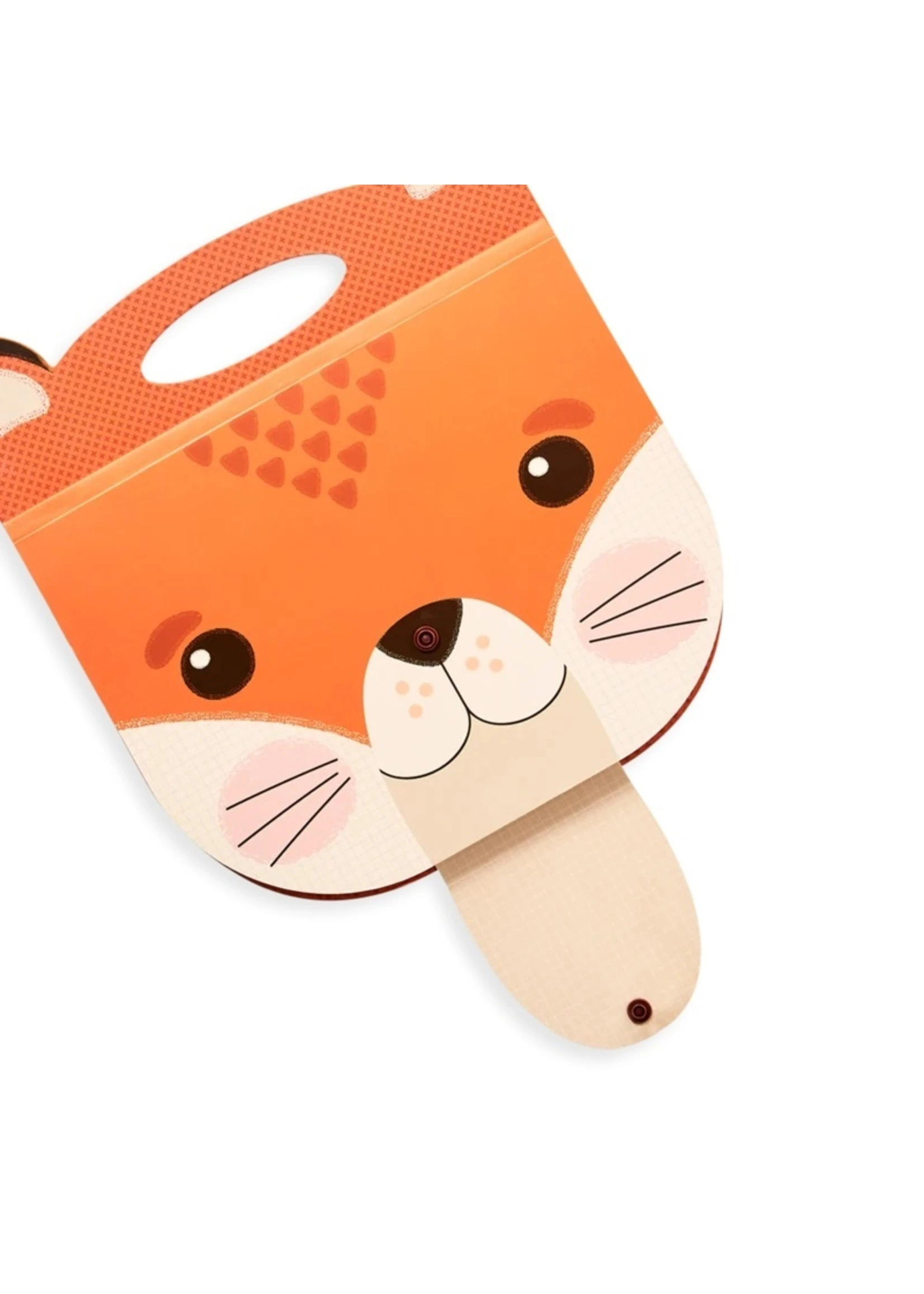 Take this friendly little Fox sketchbook anywhere you create art. This delightful animal sketchbook is perfect for creating art on-the-move. Let the Fox Carry Along Sketchbook to be your new friend in your drawing and coloring adventure. With carry handles perfect for little hands, and cute clasp noses, you can create the next masterpiece or doodle wherever you are and keep your artwork safe too!