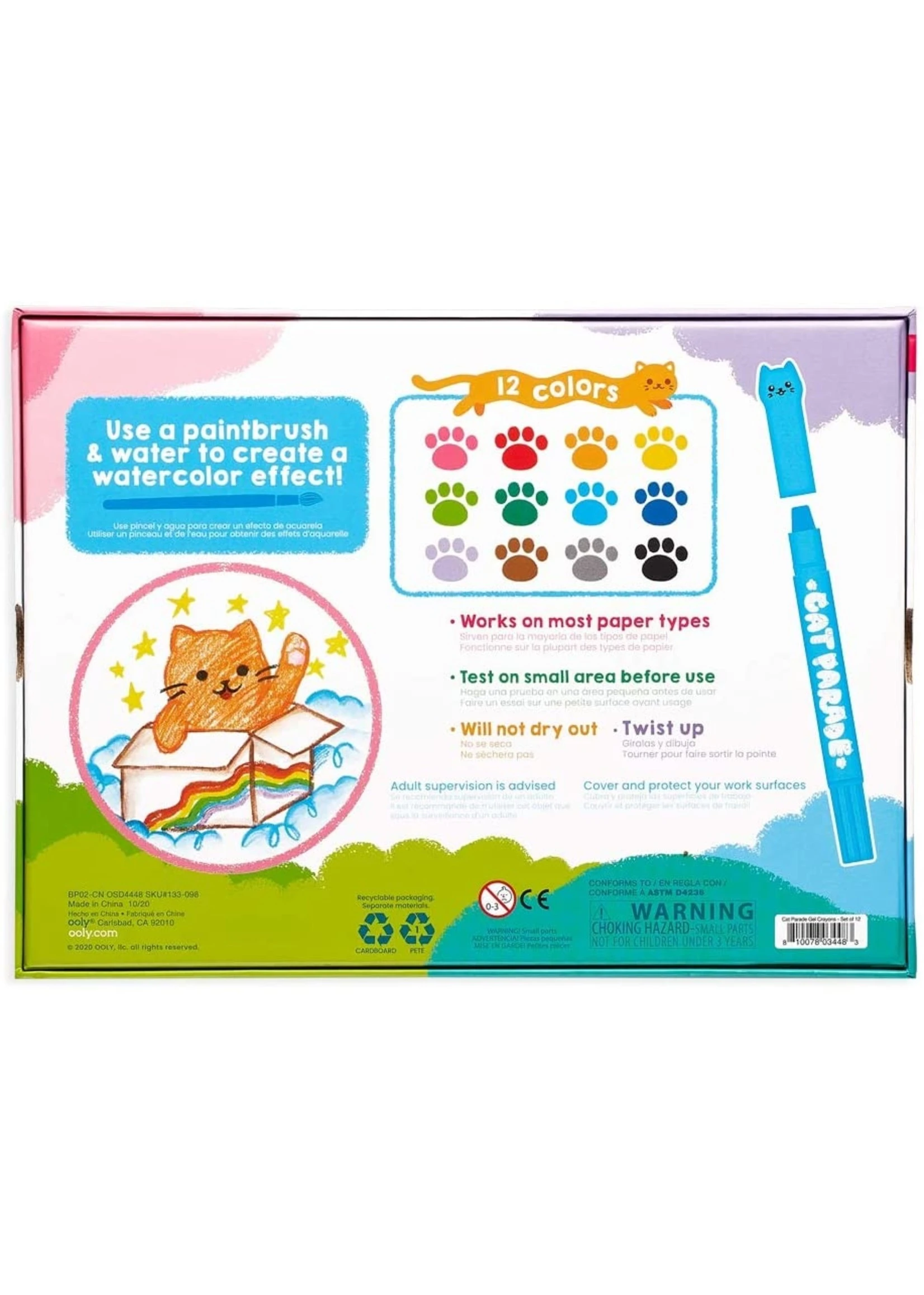 Cat Parade Gel Crayons by Ooly are a bright, fun, and easy to use option for kids ages 3 and up! The smooth gliding gel provides vivid colors, and the twisting action means no sharpening and no hassle! A great gift option for a cat-loving kid, these crayons have fun character that will keep them coming back for hours of creative fun!