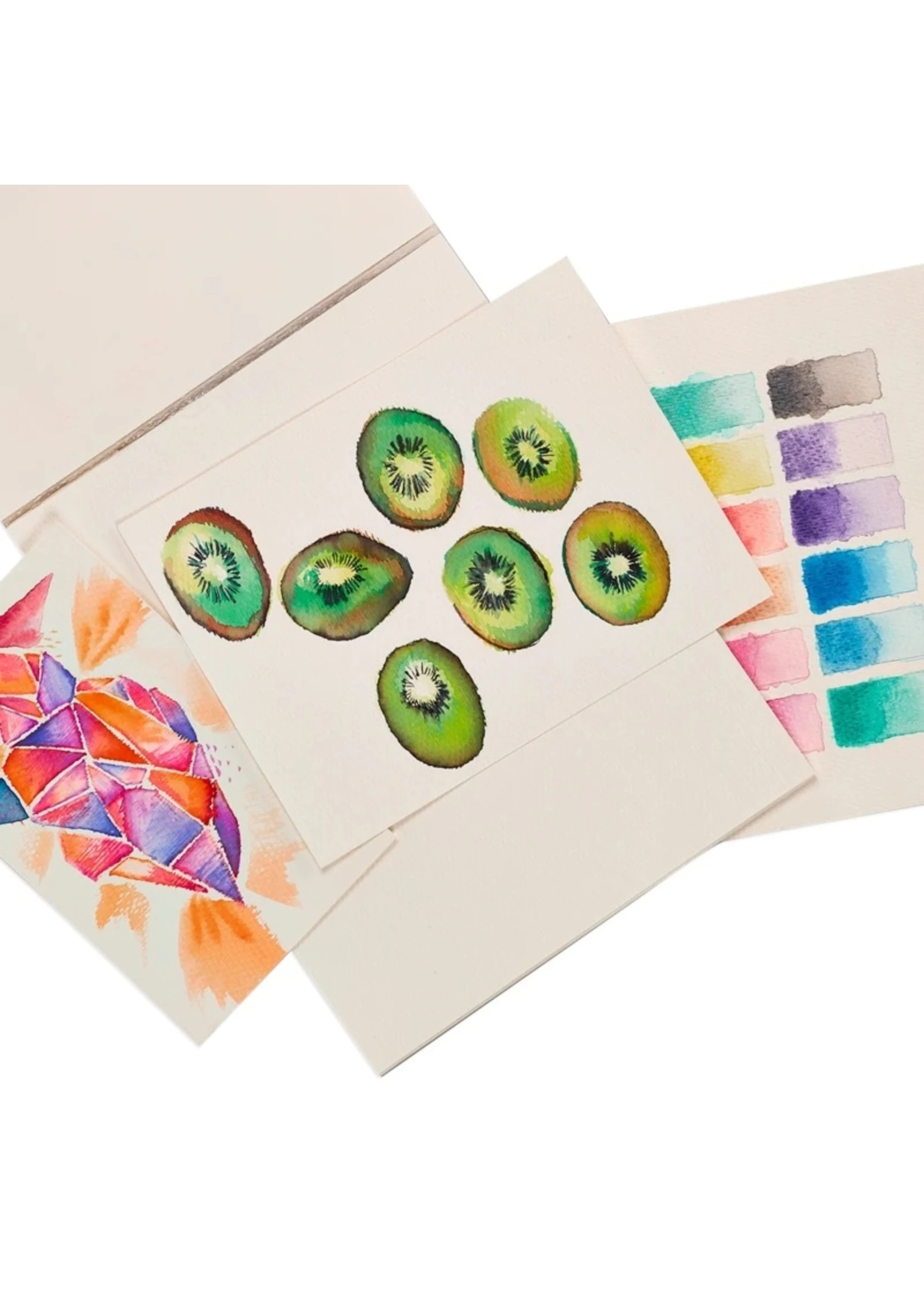 Your watercolor art belongs on high quality watercolor paper. The Chroma Blendsâ„¢ Watercolor Paper pad is a glue bound pad of watercolor paper that’s large enough for your beautiful watercolor paintings and small enough to easily travel with; 8 by 10 inches. Chroma Blends watercolor paper is heavy weight at 160 pounds and 350 grams and acid free to help your watercolor creations last. Each Chroma Blends pad has 15 sheets of watercolor paper.