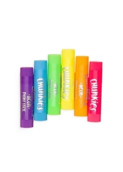 A neon set of Chunkies Paint Sticks in a travel-friendly pack of 6! These bright neon paint sticks are easy to hold and come in 6 outstanding neon quick drying colors. You twist up the barrels for long-lasting, mess-free fun that kids and adults alike will love.