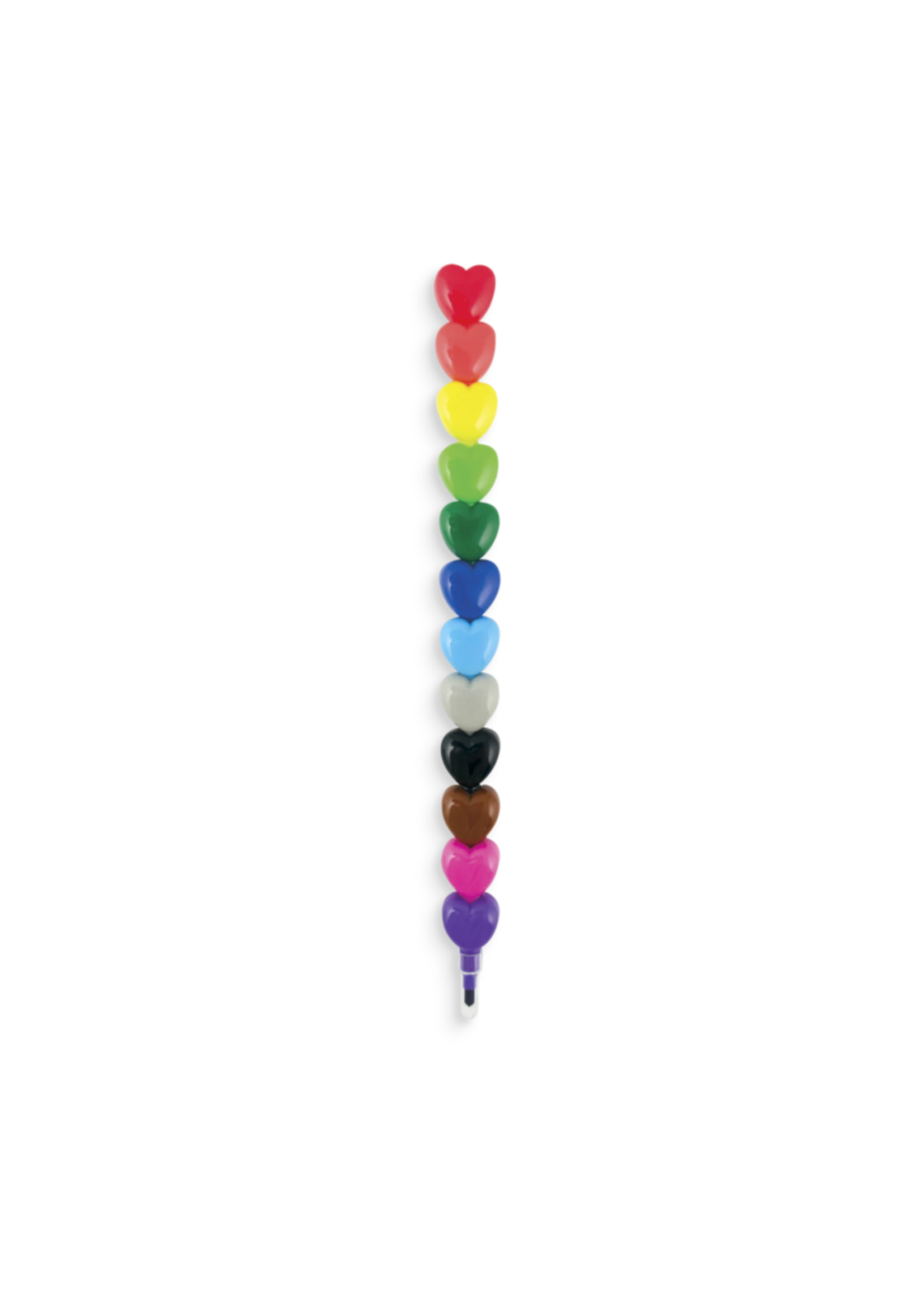 Heart to Heart Stacking Crayons is the amazing stackable crayon set all in one crayon. Each heart has a single colored crayon and is totally interchangeable from the rest. Mix and match the 12 color hearts so you can make your own unique Heart to Heart crayon. And each crayon comes with a fine point so you can make all sorts of detailed coloring projects. And for extra fun, you can mix and match crayons with your friends to make all sorts of fun Heart to Heart stacking creations.