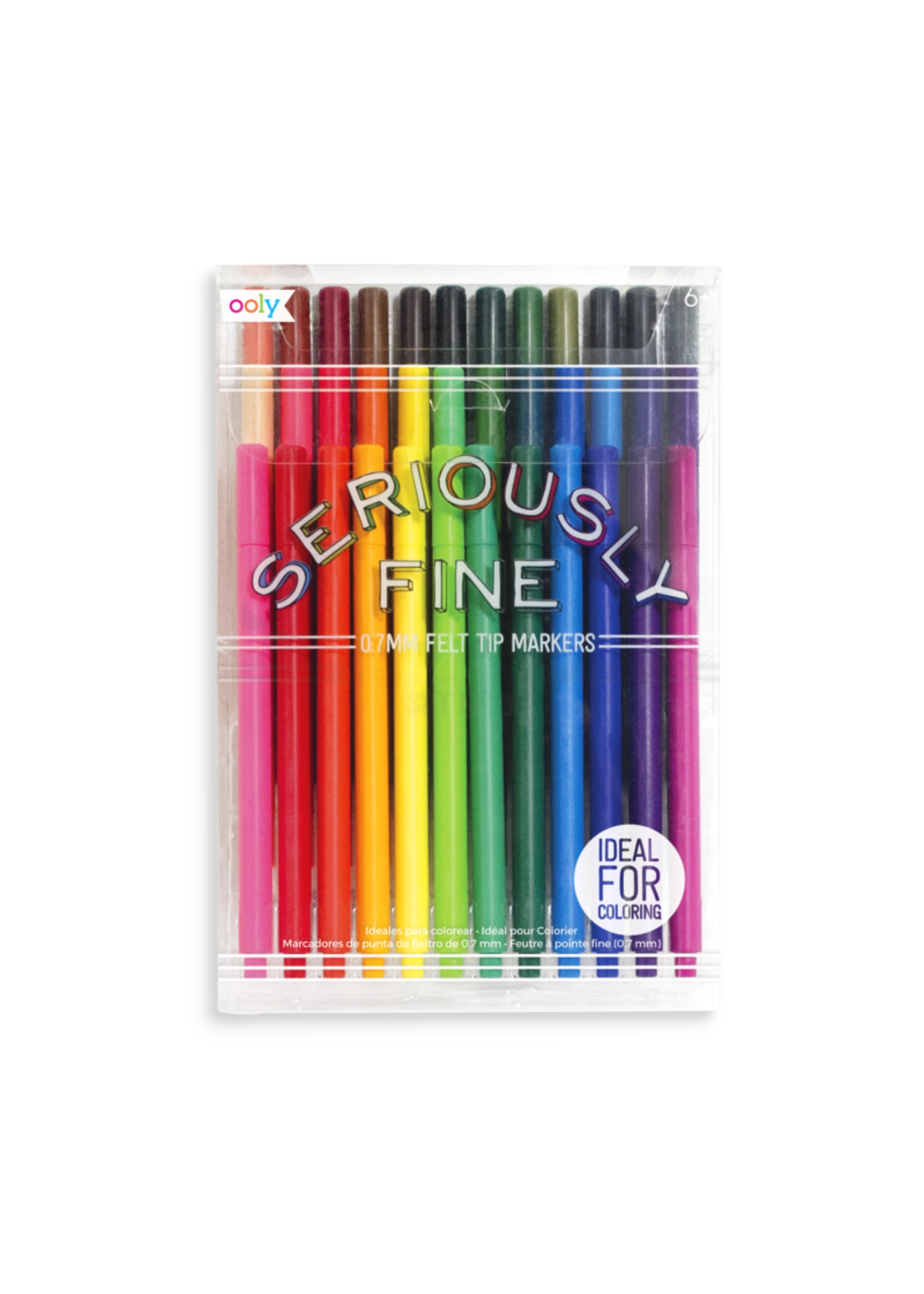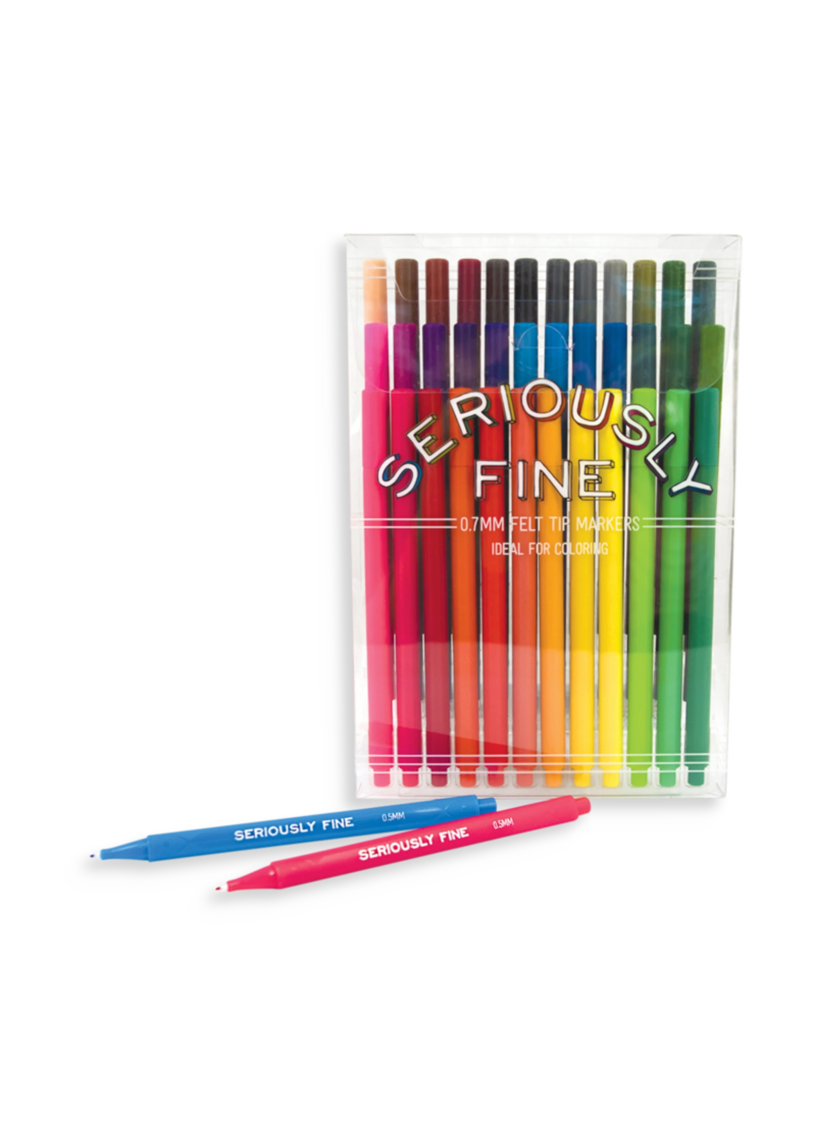 For those who take their coloring seriously, the Seriously Fine Marker set is the perfect choice for your coloring needs. Designed for adult coloring enthusiasts in mind, this set of felt tip markers features a super fine tip at just 0.7mm. These markers are perfect for bringing stunning color to ultra detailed coloring books. Seriously Fine Markers have a wide variety of colors; 36 colors in a set. The barrels are triangular shaped so they’re a great ergonomic fit and won’t roll off your coloring book or tabletop.