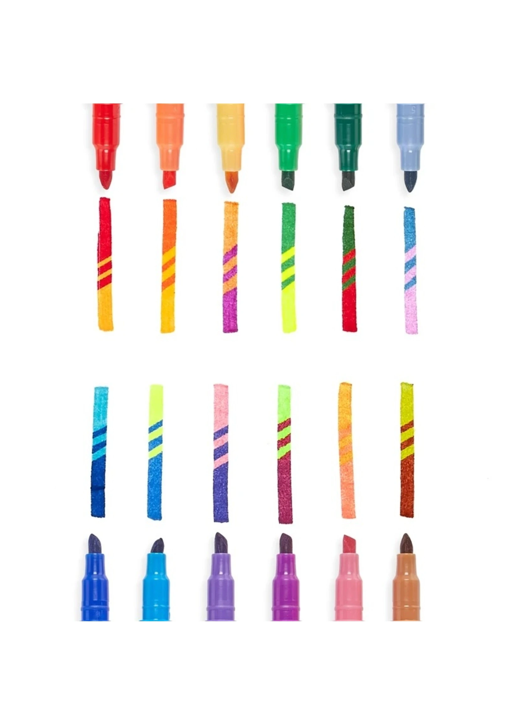 This set of twelve color markers comes with chiseled tips for both thick and thin strokes. Color boldly and then change it up in a different way each time. Just use any of the white ends to draw or color over your colored in area. Make mystery color change designs or turn your entire piece of art on its head by changing everything. Watch wonder unfold as you create a new masterpiece with these one of a kind color markers.