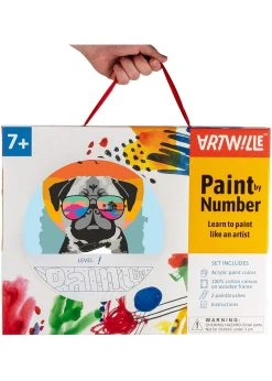The rules are simple: fill in the numbered areas with the appropriate colors. Select zone you’re planning to paint and start painting from the largest to the smallest areas. Draw anywhere! You don’t need an easel or other extras to do this. Numbers and outlines are printed clearly, so you don’t have to look at the picture under a magnifying glass. Acrylic paints are odorless and dry quickly. If you went beyond the outline – it’s not a problem! Just apply the appropriate color on top. The game is designed for children older than 7 years.